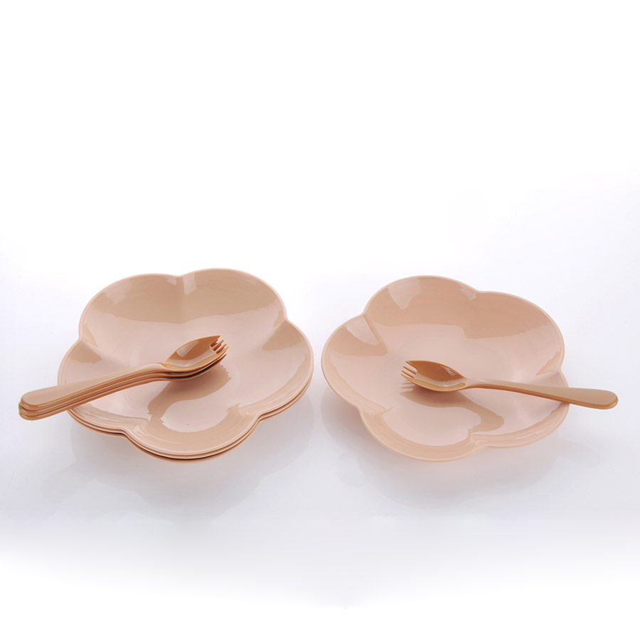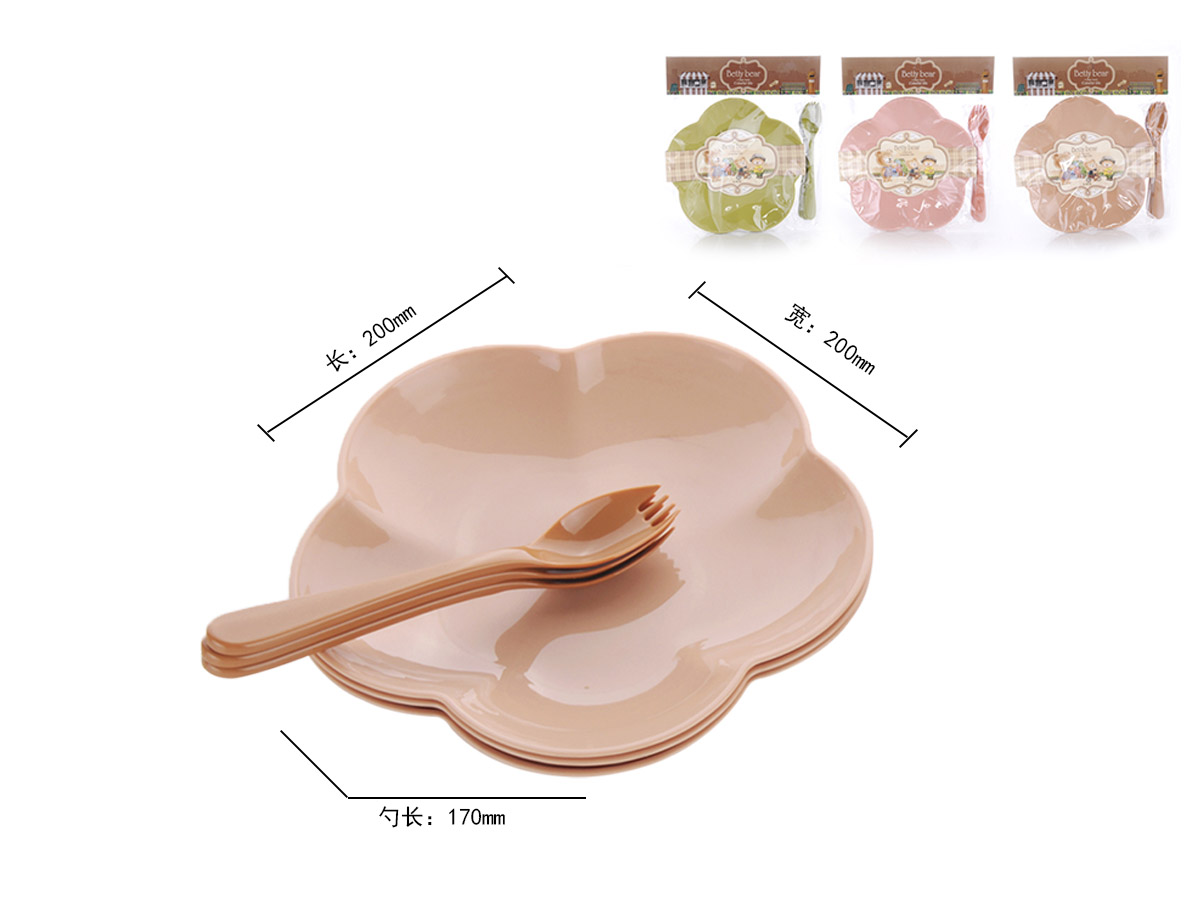 得力熊歐式大號(hào)簡(jiǎn)約梅花餐盤(4pcs)( 配4pcs叉匙)