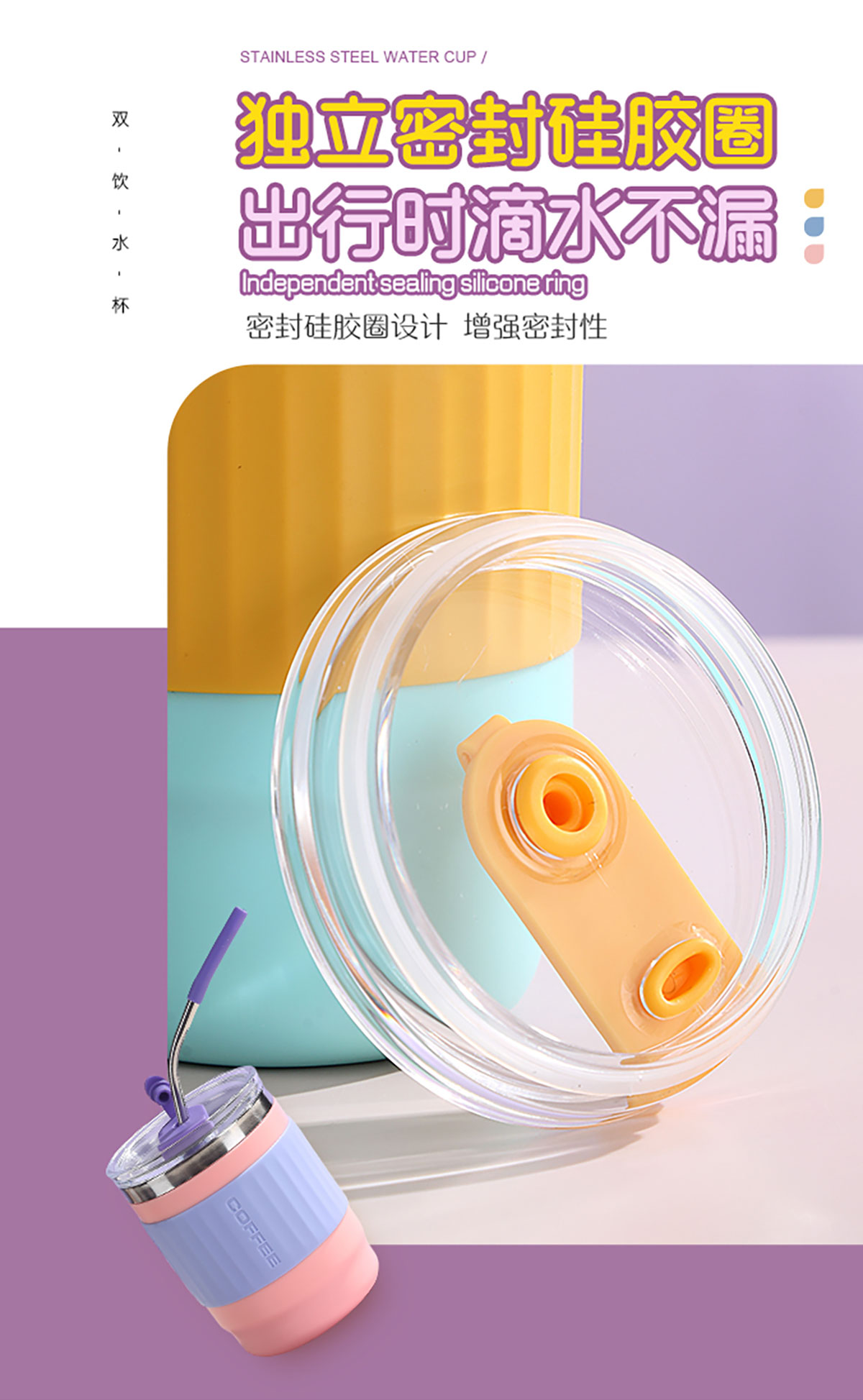 400ml/500ml時尚防燙雙飲水杯(配不銹鋼吸管)