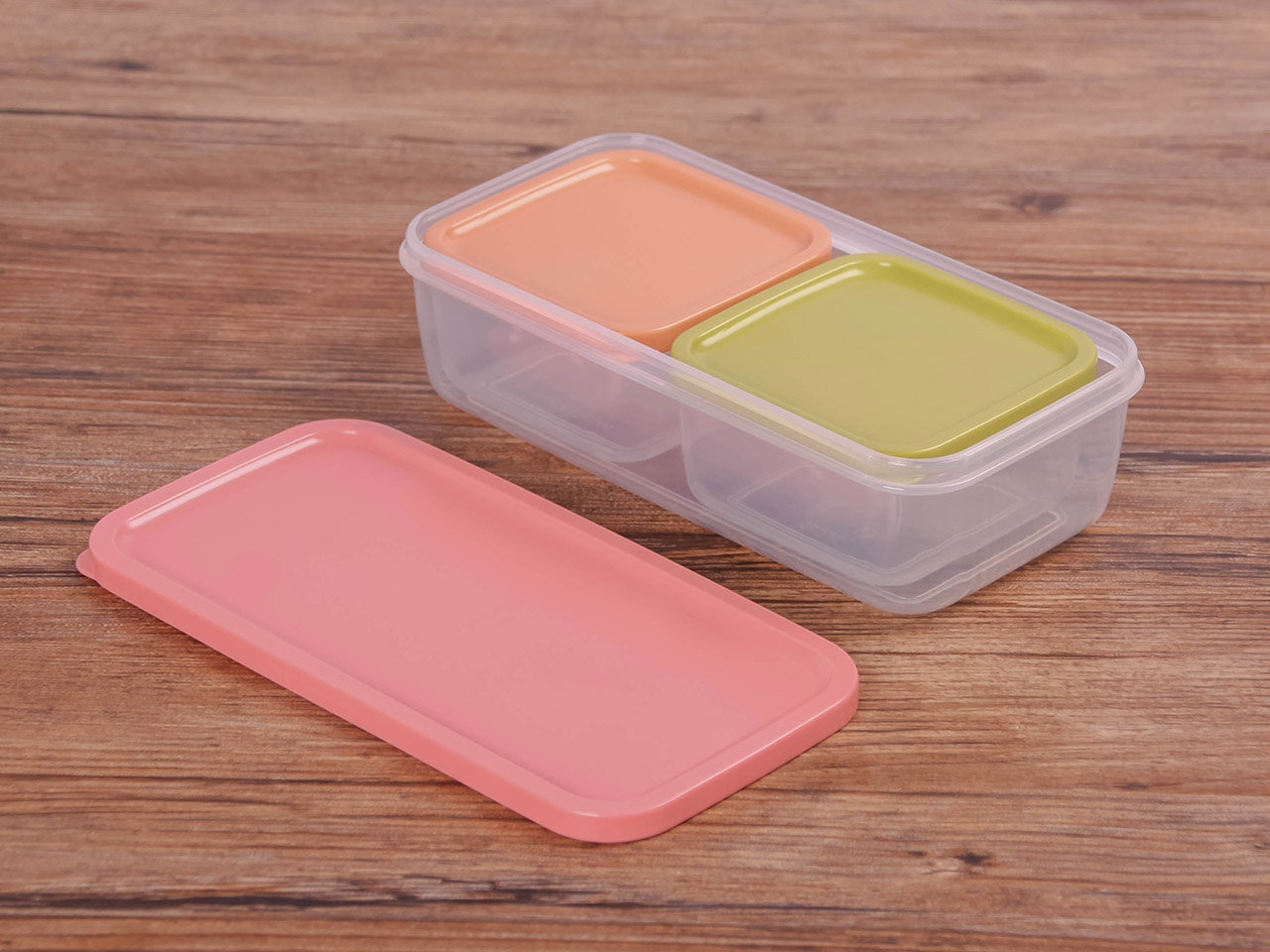 得力熊長方3件套疊疊保鮮盒(混色)