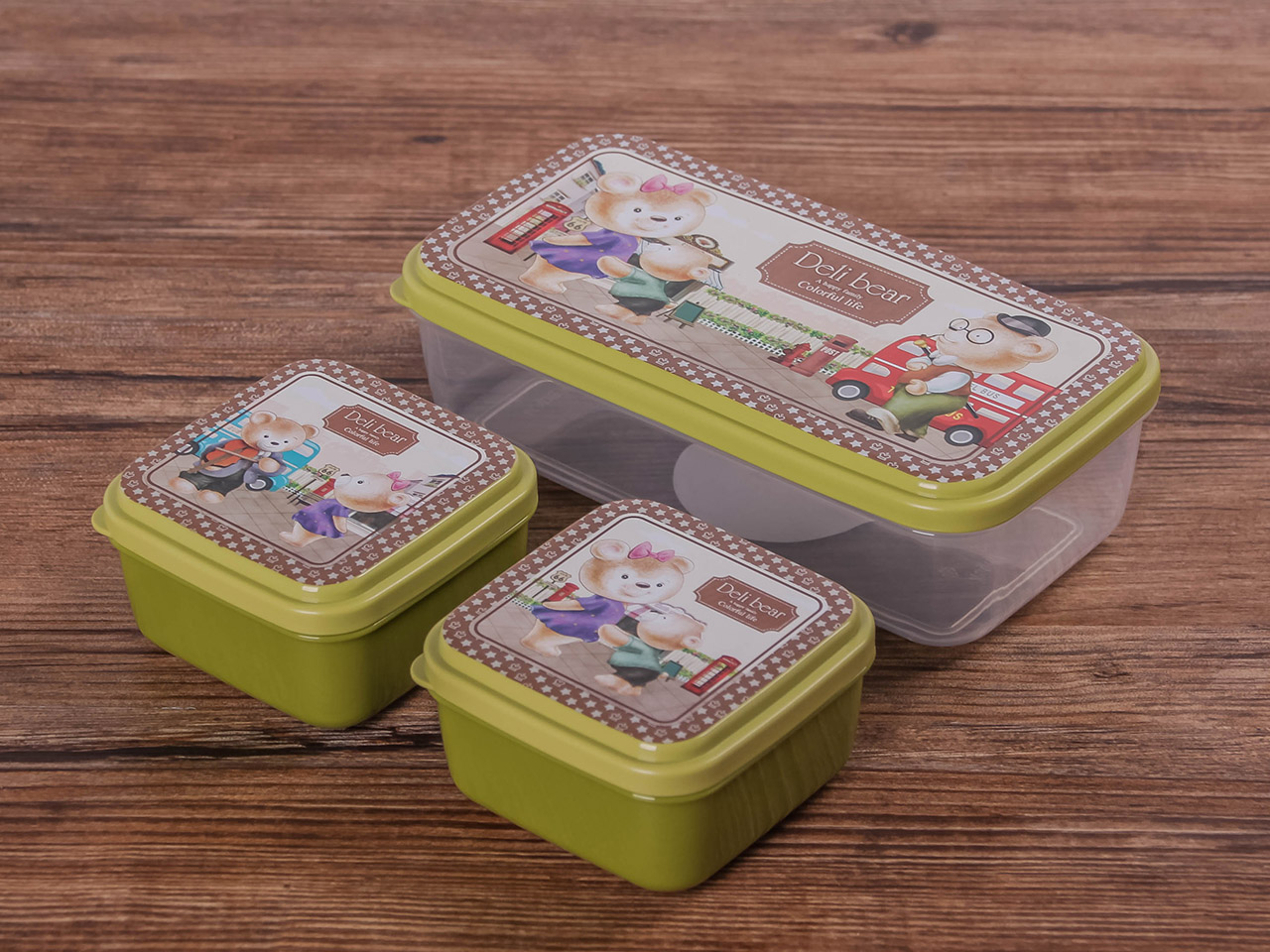得力熊長(zhǎng)方3件套保鮮盒