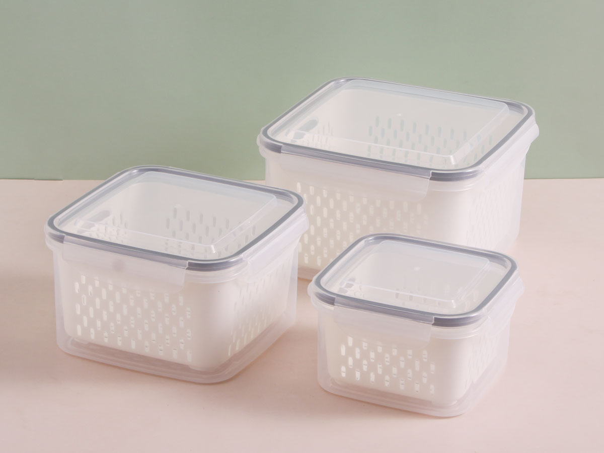 三件套密封瀝水保鮮盒(正方形)