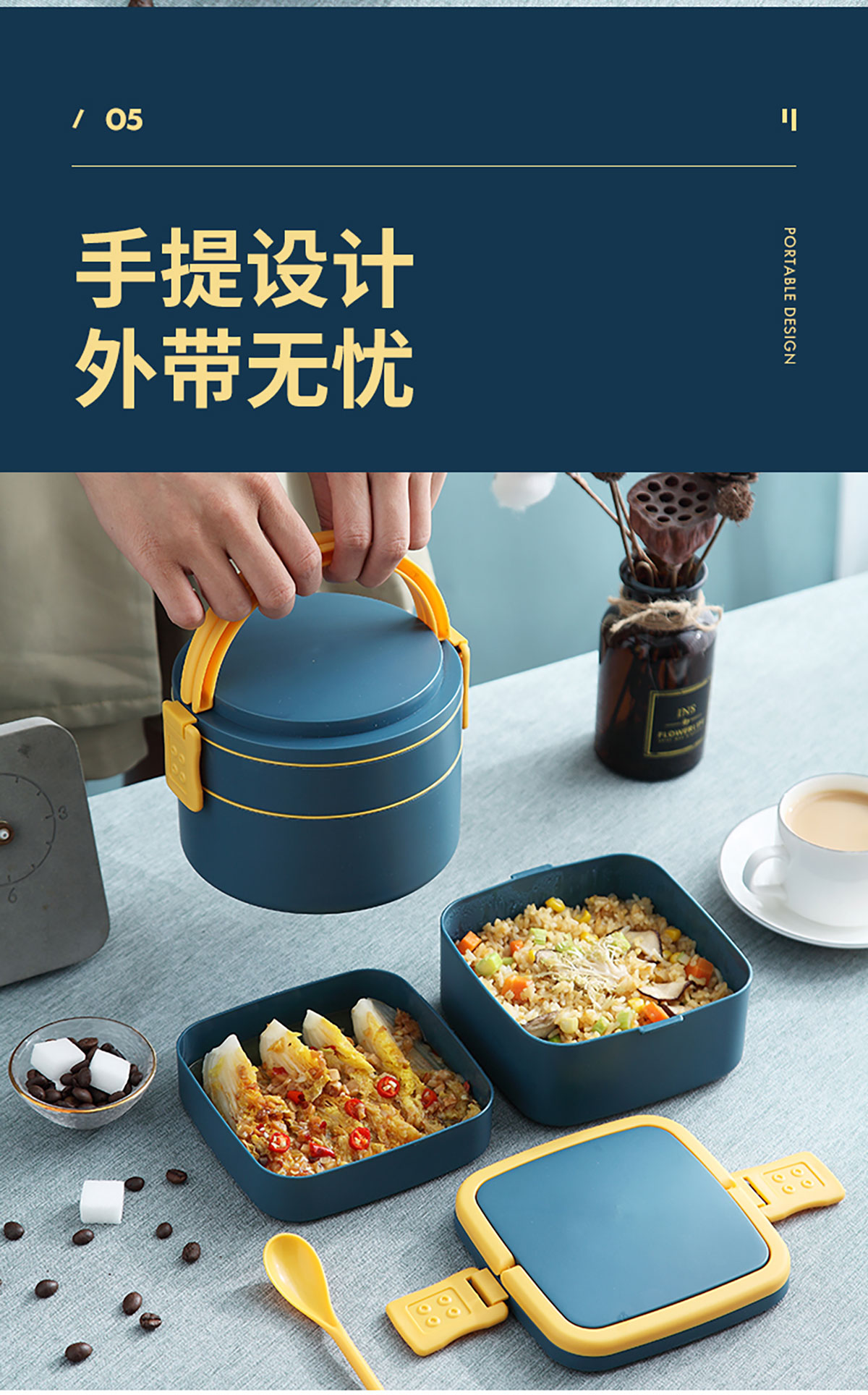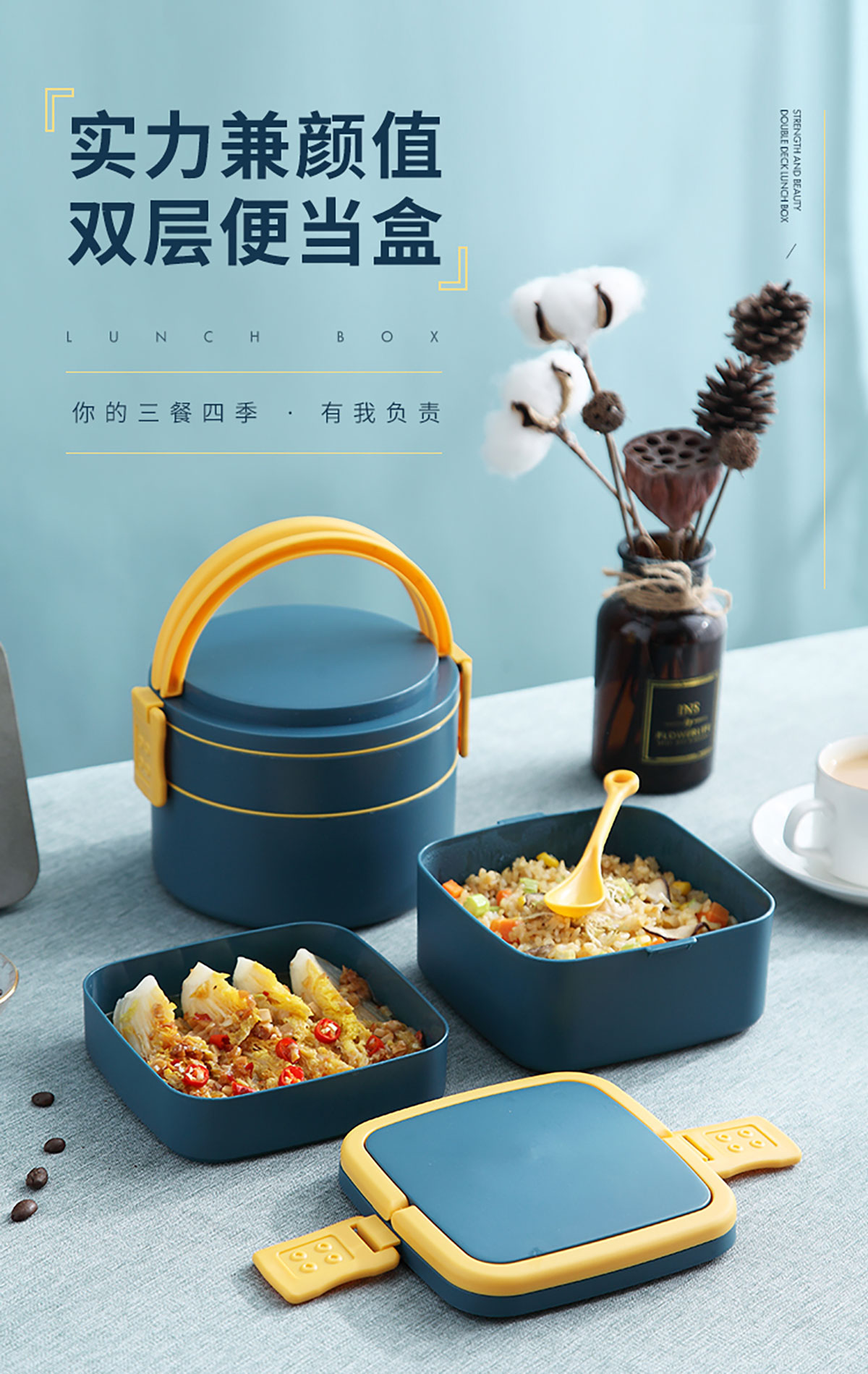 麥纖圓形/方形雙層手提餐盒(1400ml)