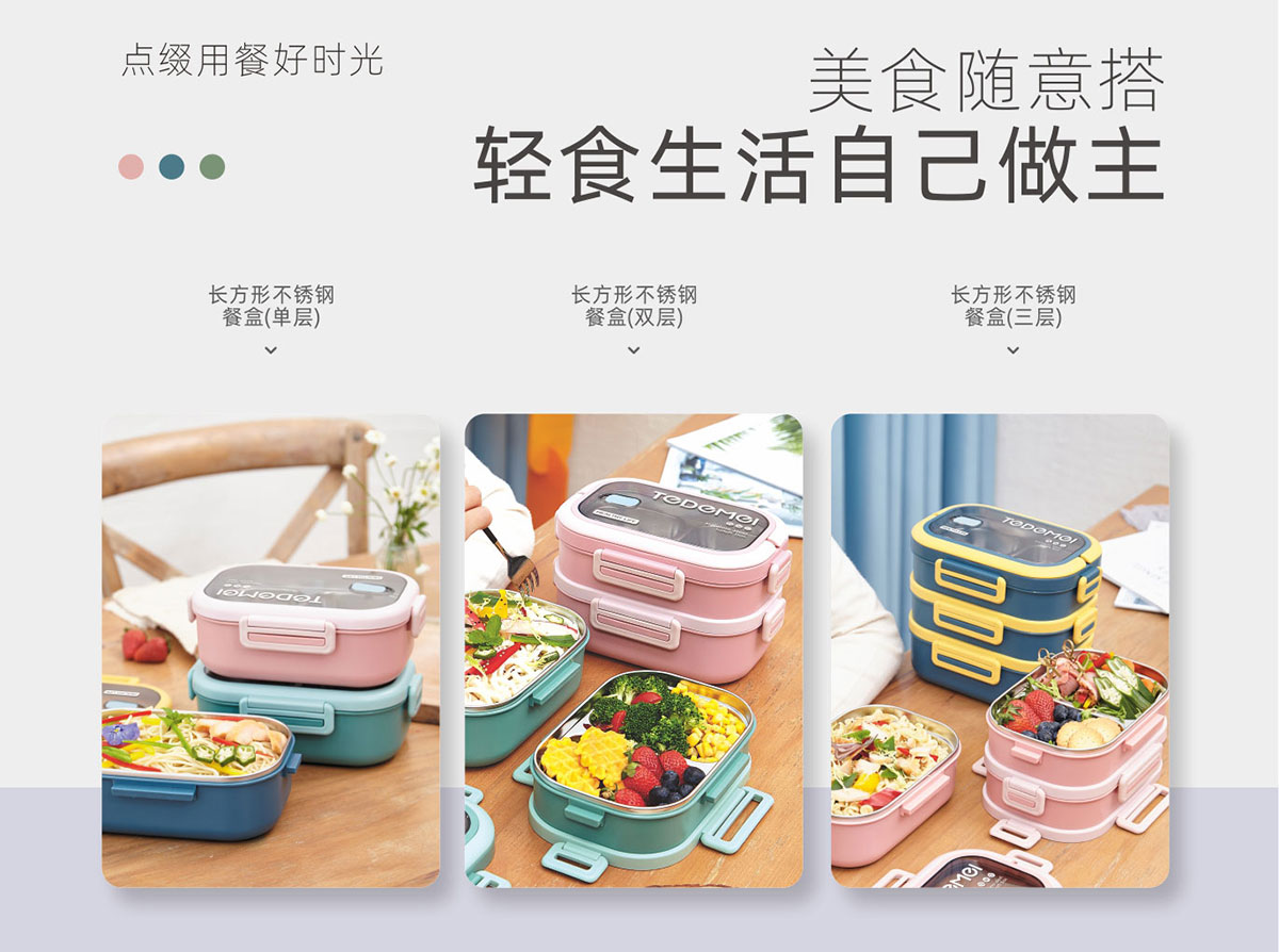 長方形不銹鋼餐盒(單層/雙層/三層)