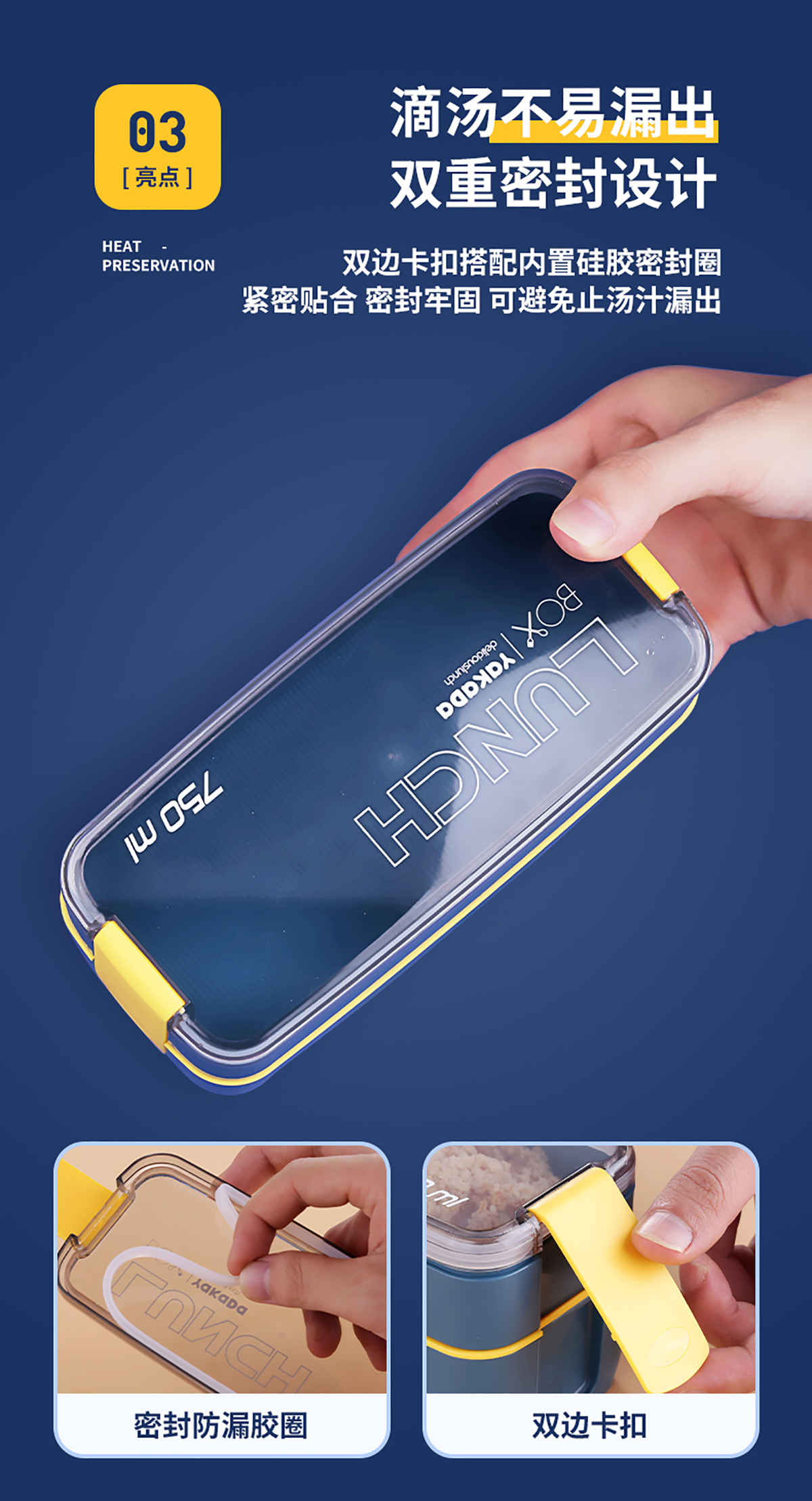 莫蘭迪透明蓋飯盒(長(zhǎng)扣)750ml