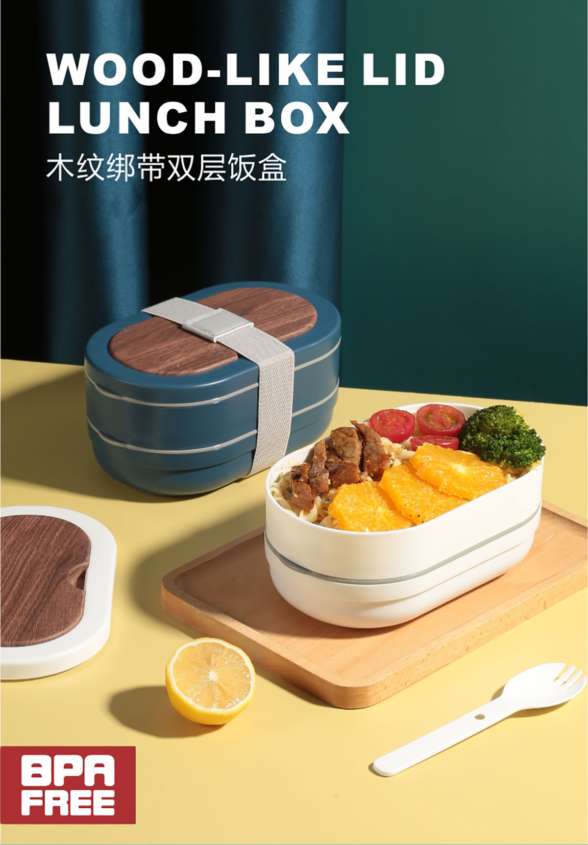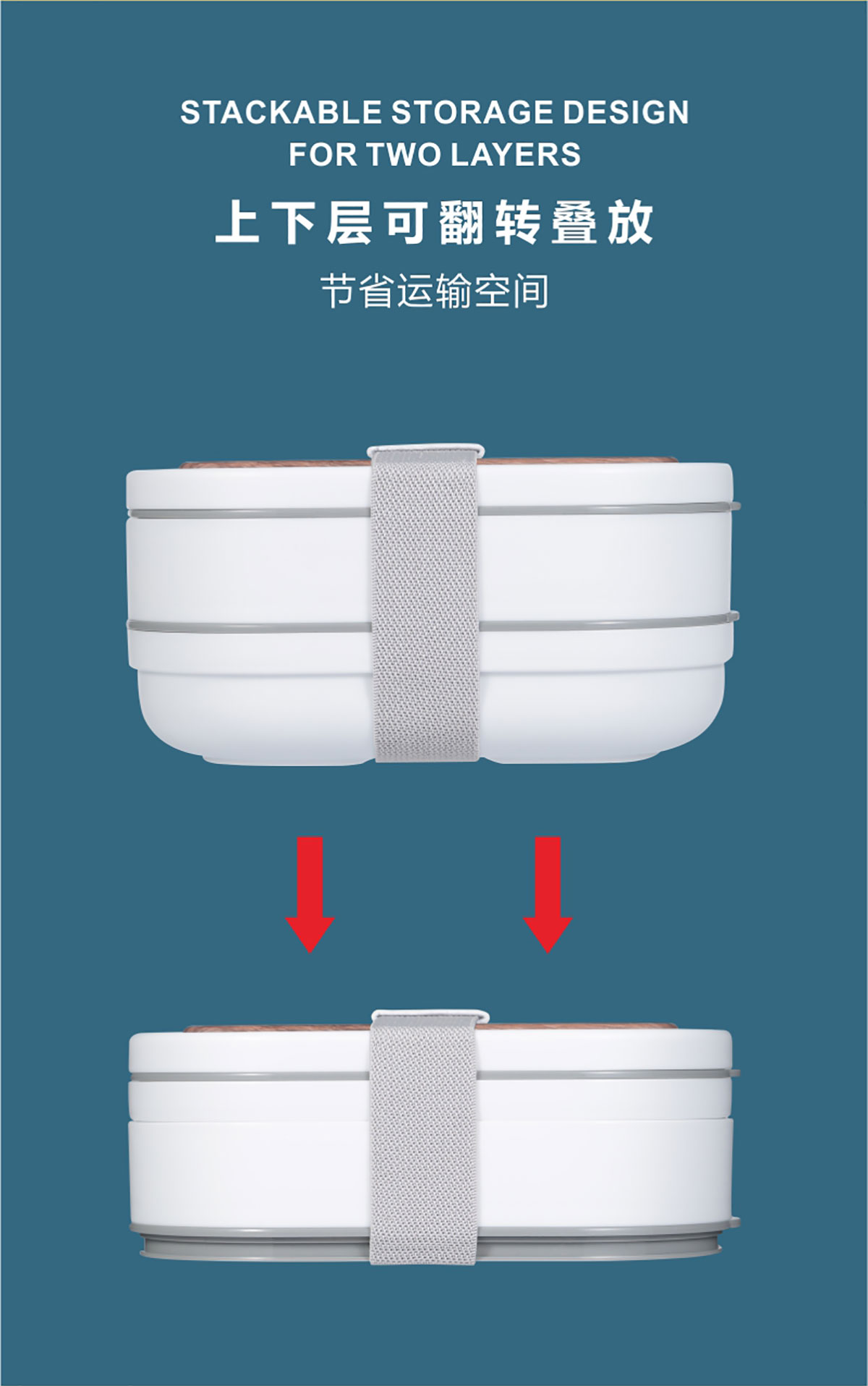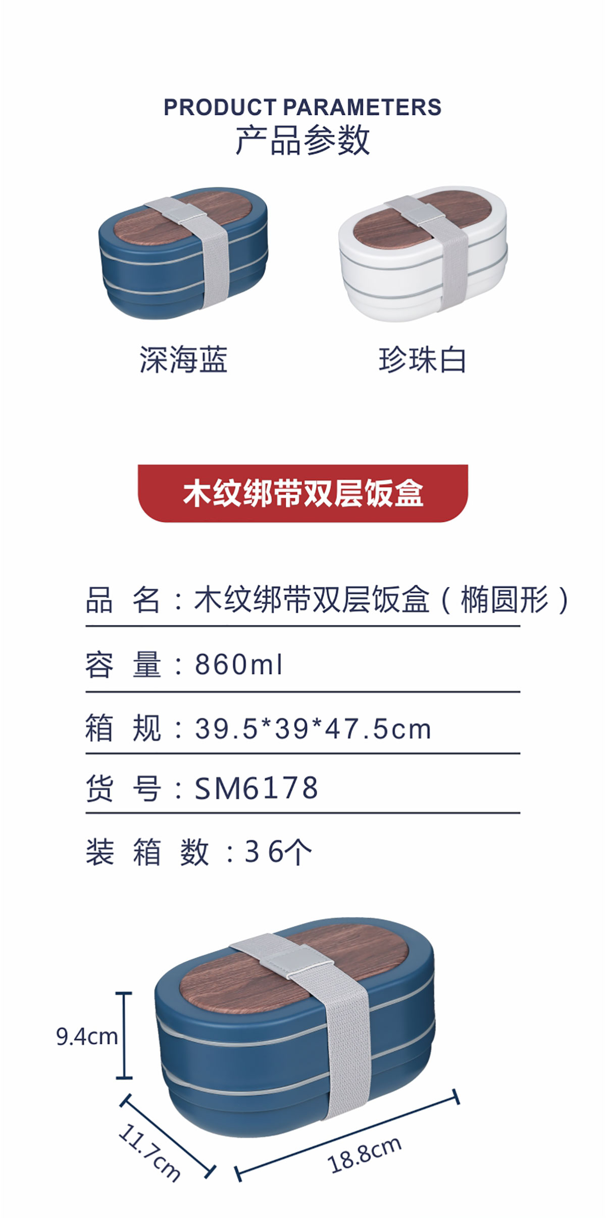 木紋綁帶雙層飯盒(橢圓形)860ml