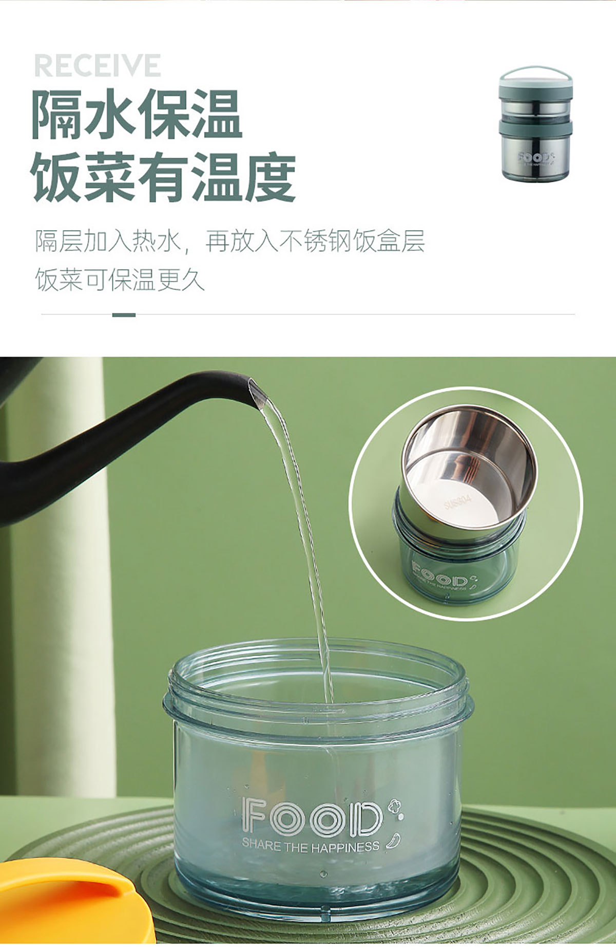 Stuff:內(nèi)膽304不銹鋼+外盒AS+勺蓋PP/彩盒
