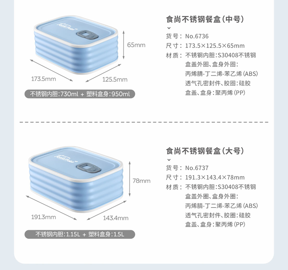 食尚不銹鋼餐盒(小號(hào)580ml/中號(hào)950ml/大號(hào)1.5L)