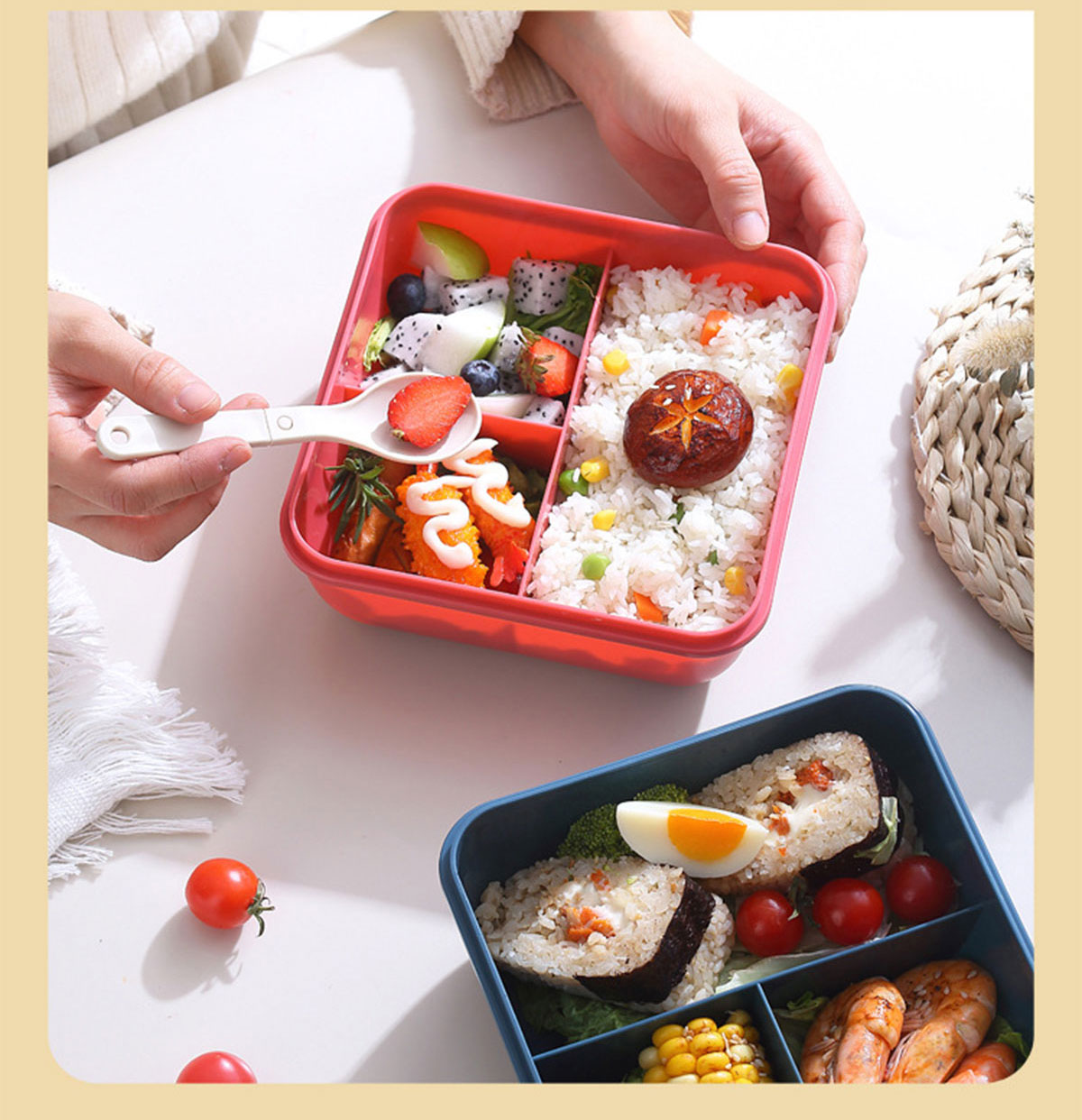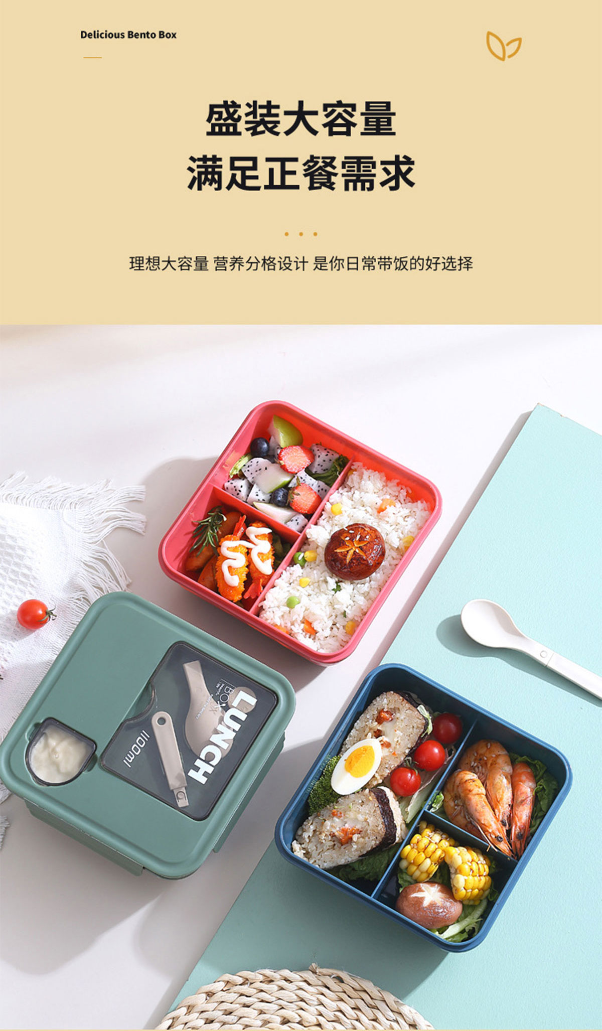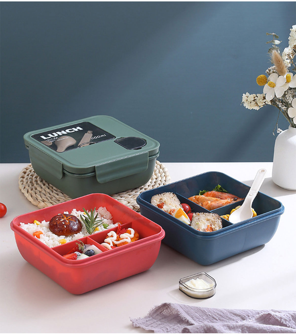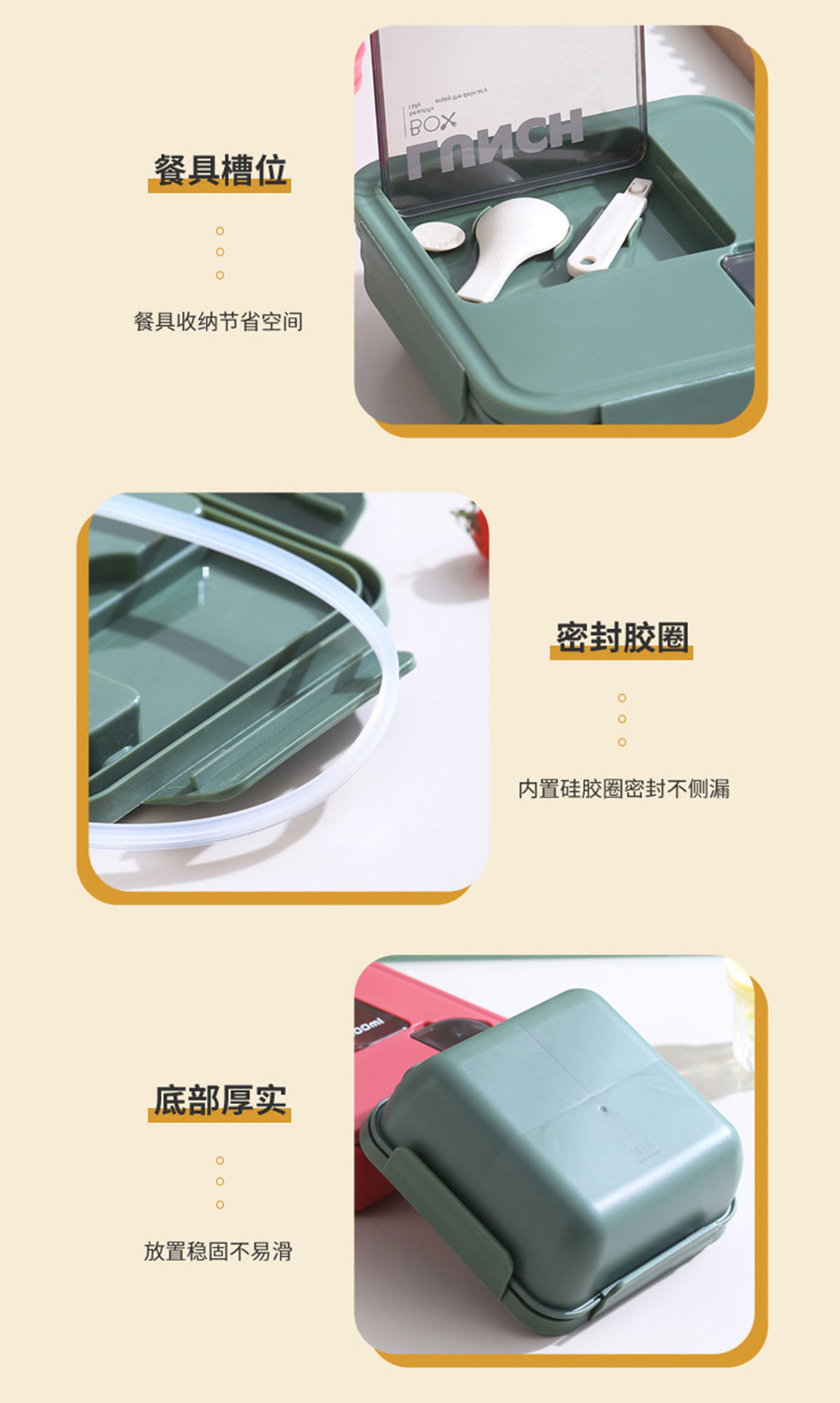 正方形醬料盒三格飯盒1100ml