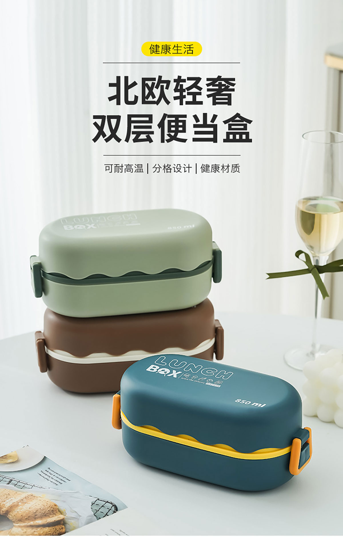 小歐式雙層便當(dāng)盒850ml
