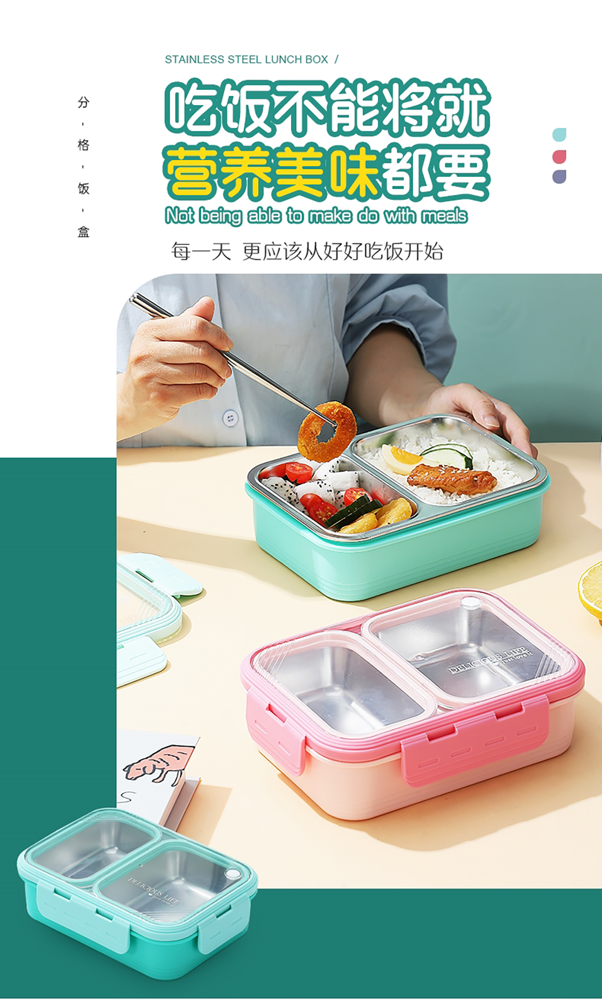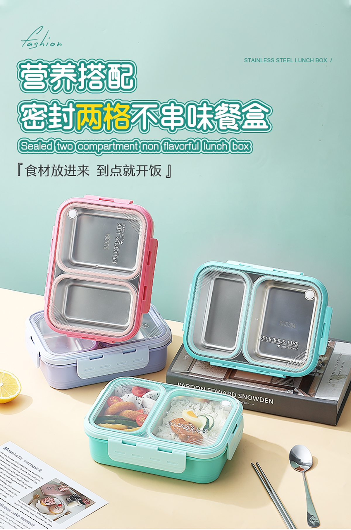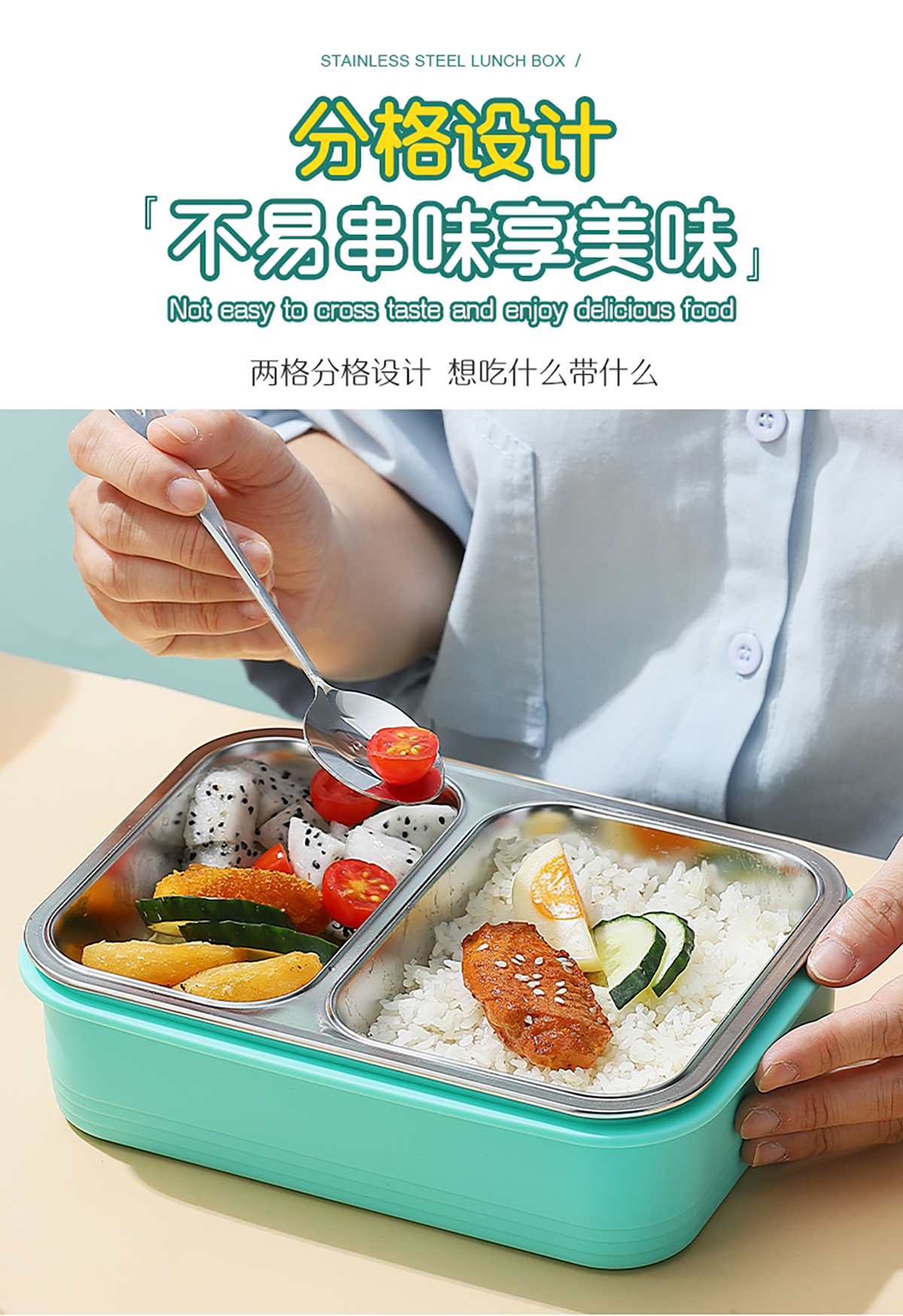 2格不串味不銹鋼餐盒700ml