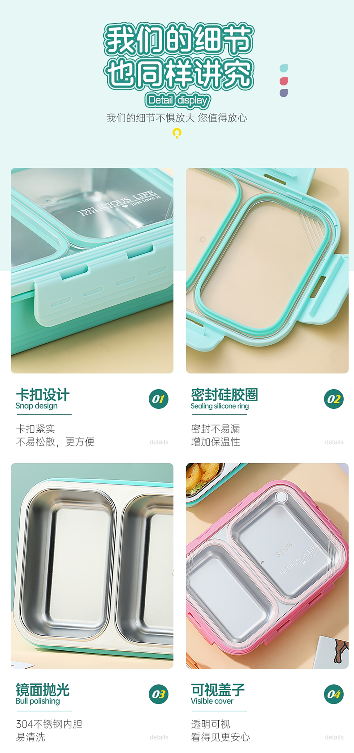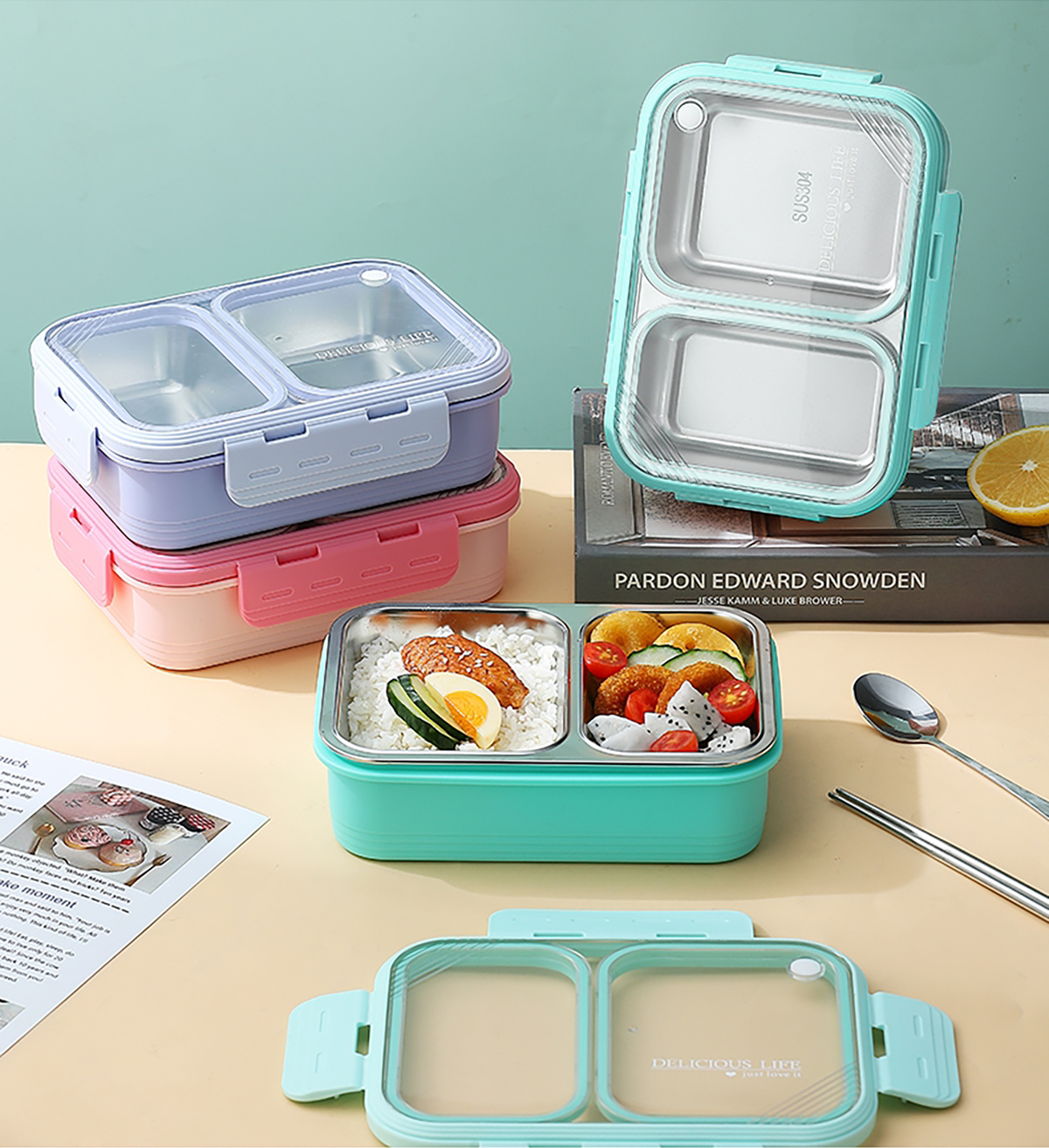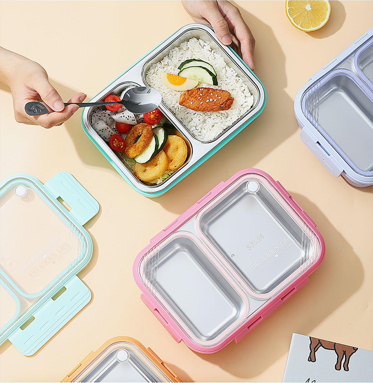 2格不串味不銹鋼餐盒700ml