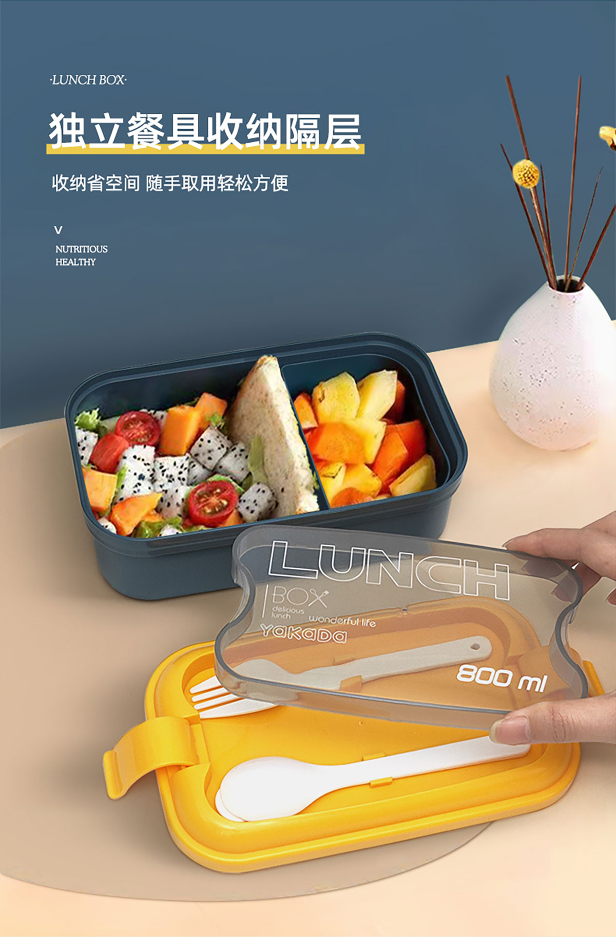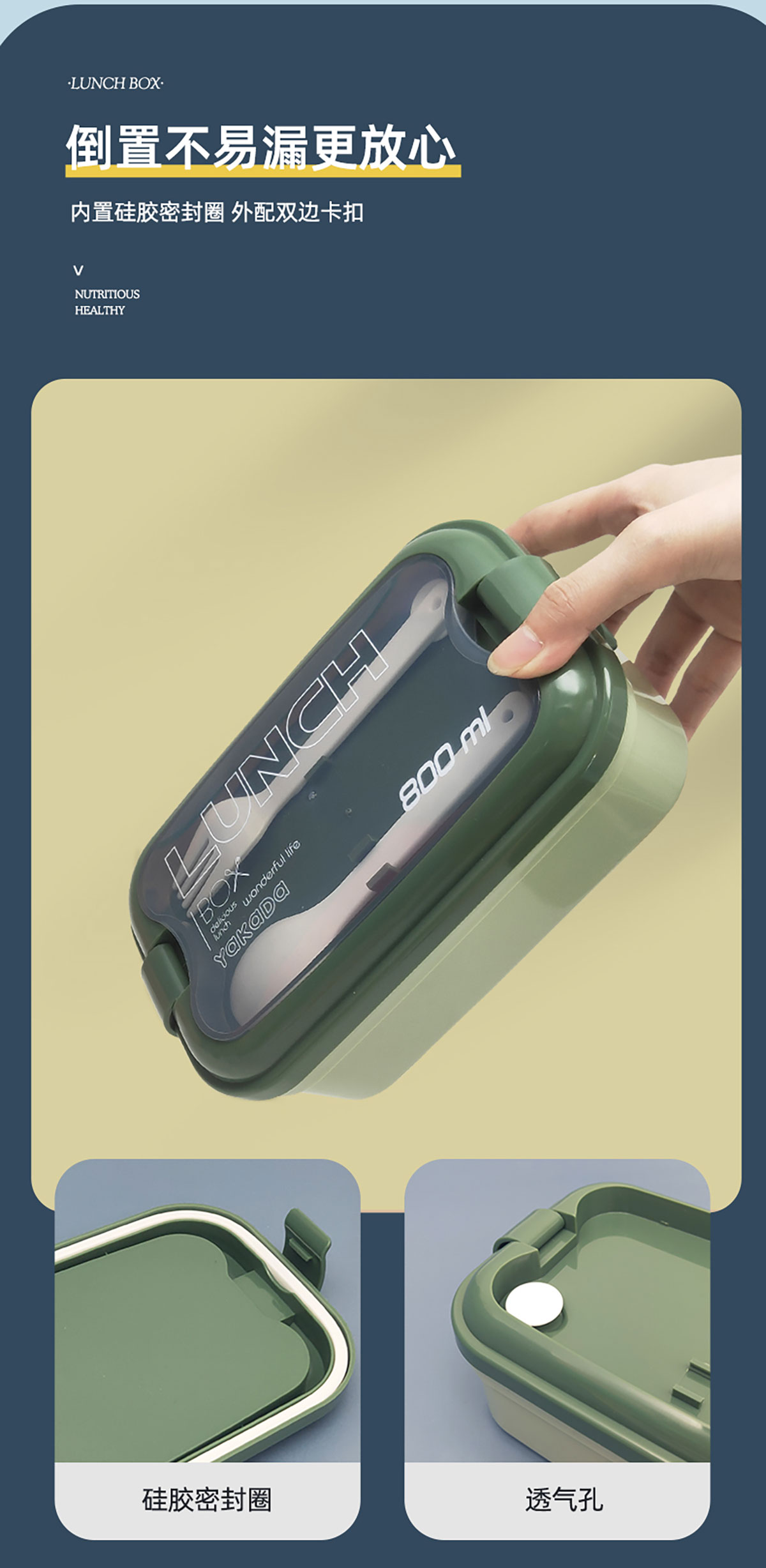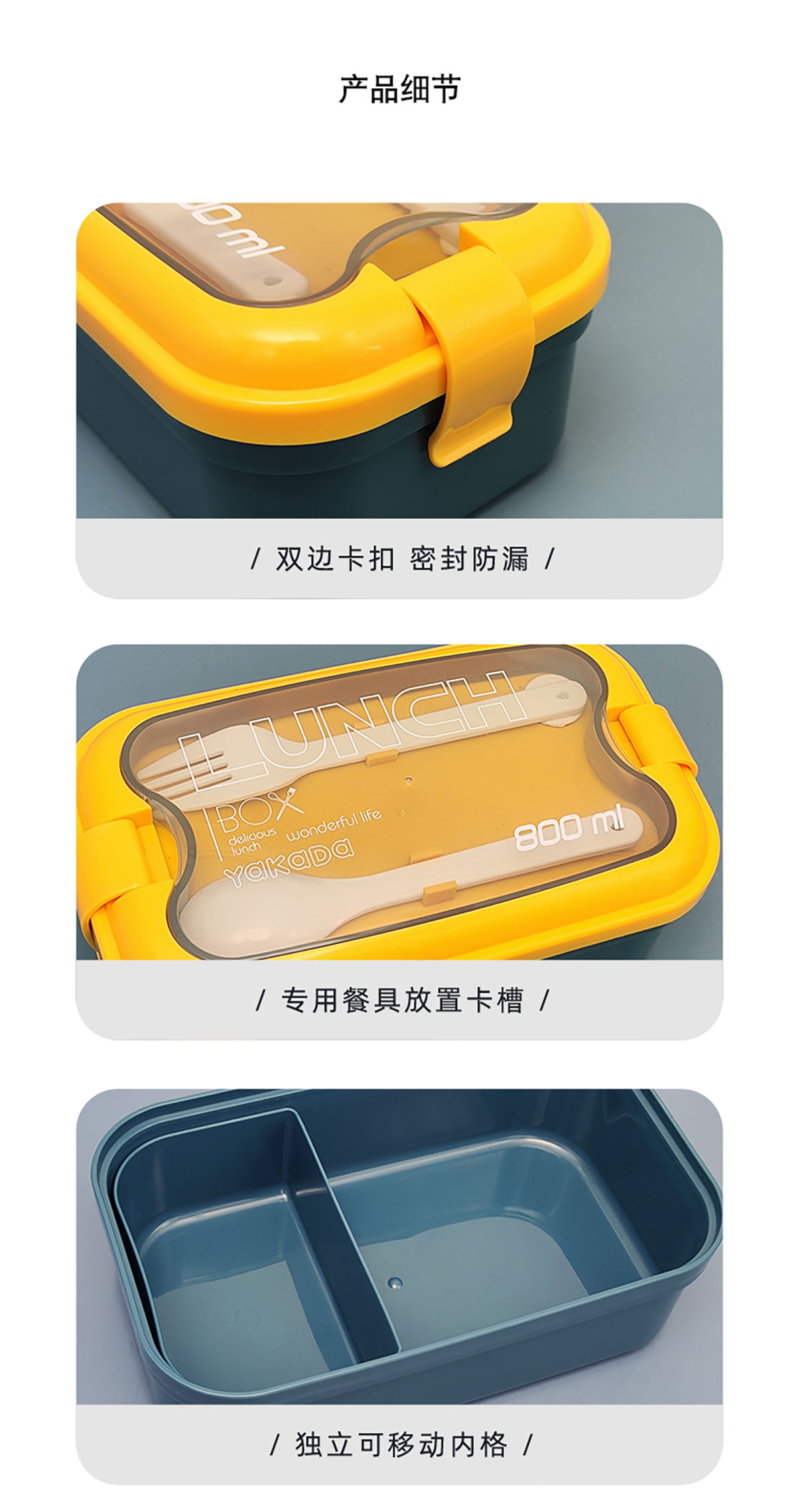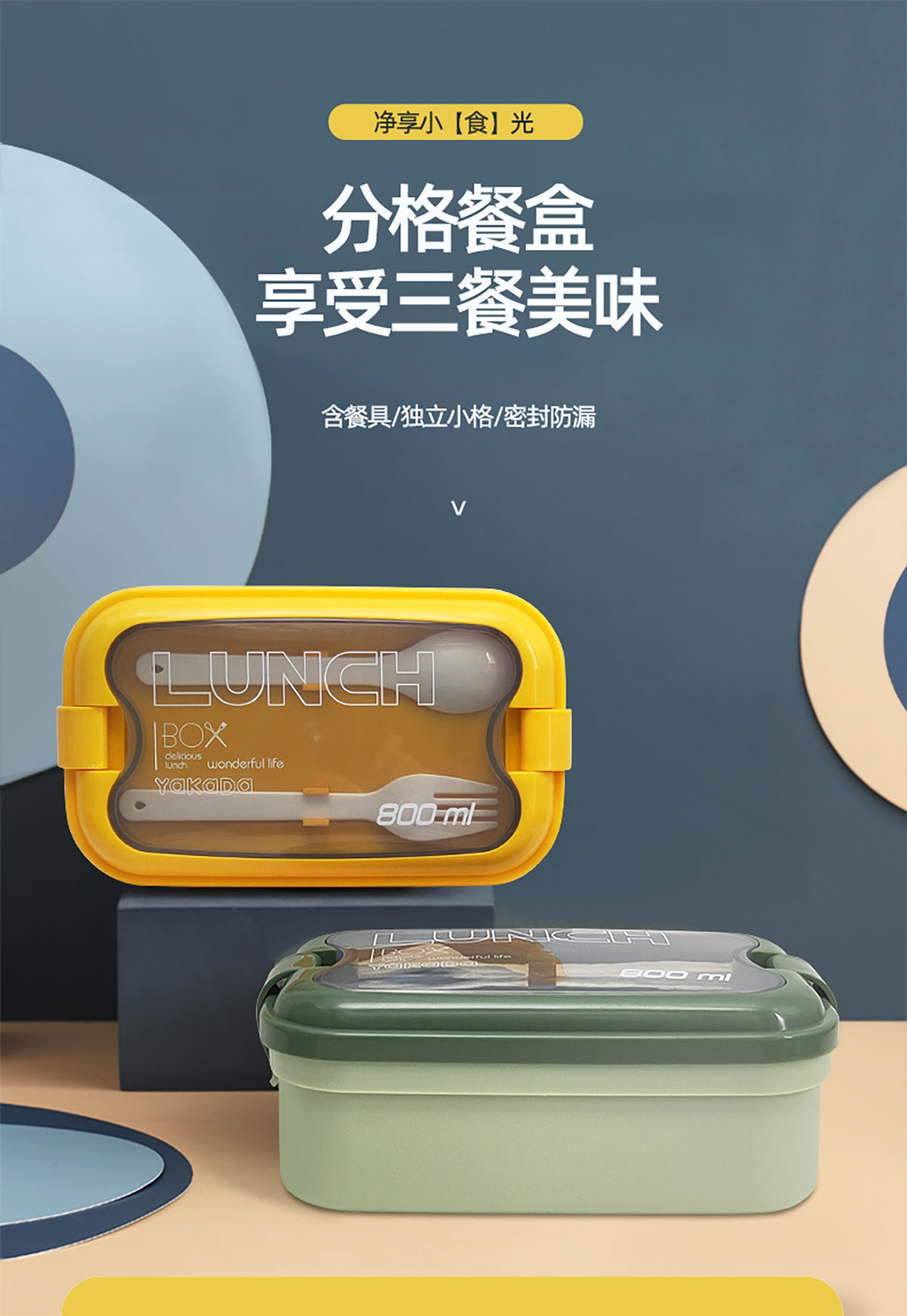莫蘭迪單層弧扣飯盒800ml