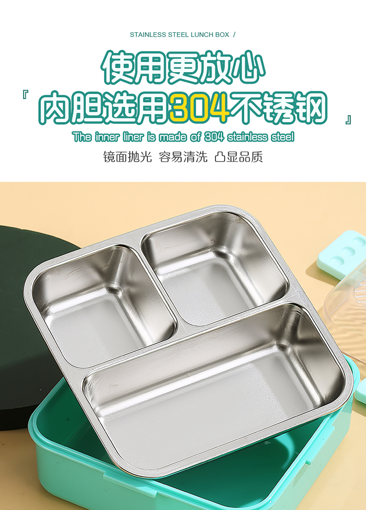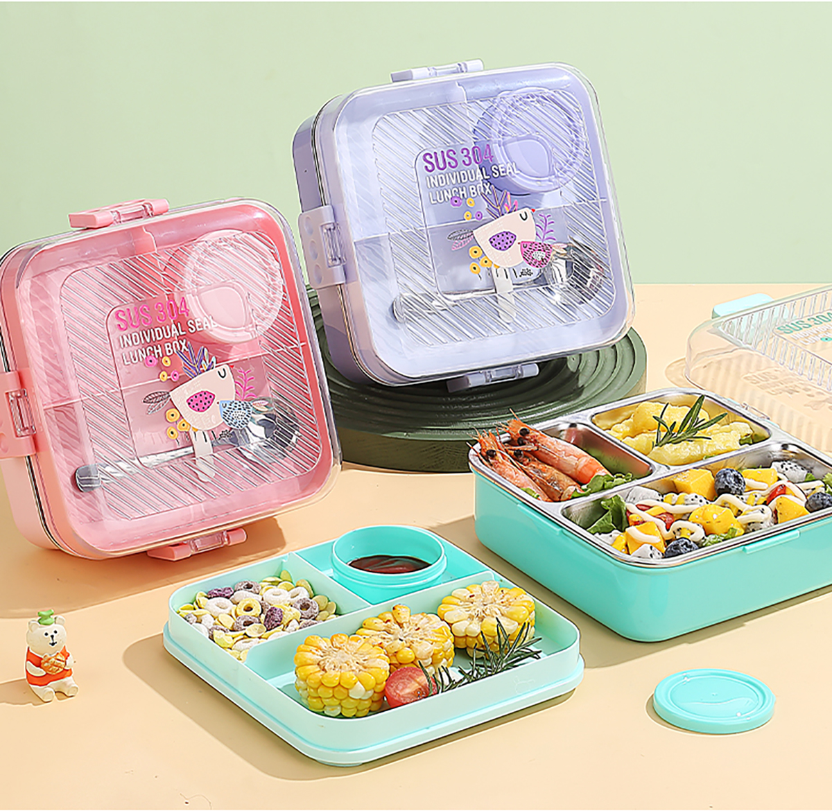 卡通正方形不銹鋼飯盒1120ml+70ml