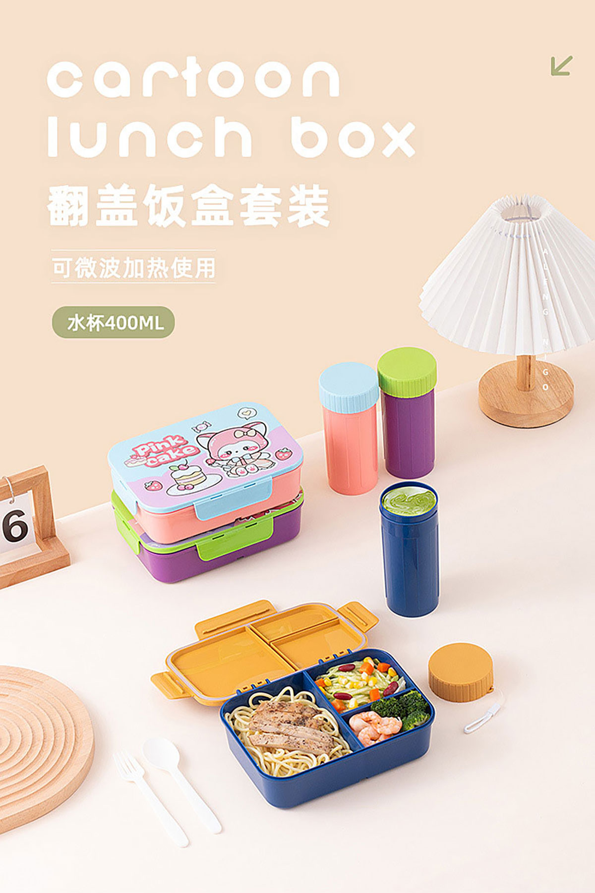 卡通飯盒1200ml/飯盒水壺套裝(1200ml+400ml)