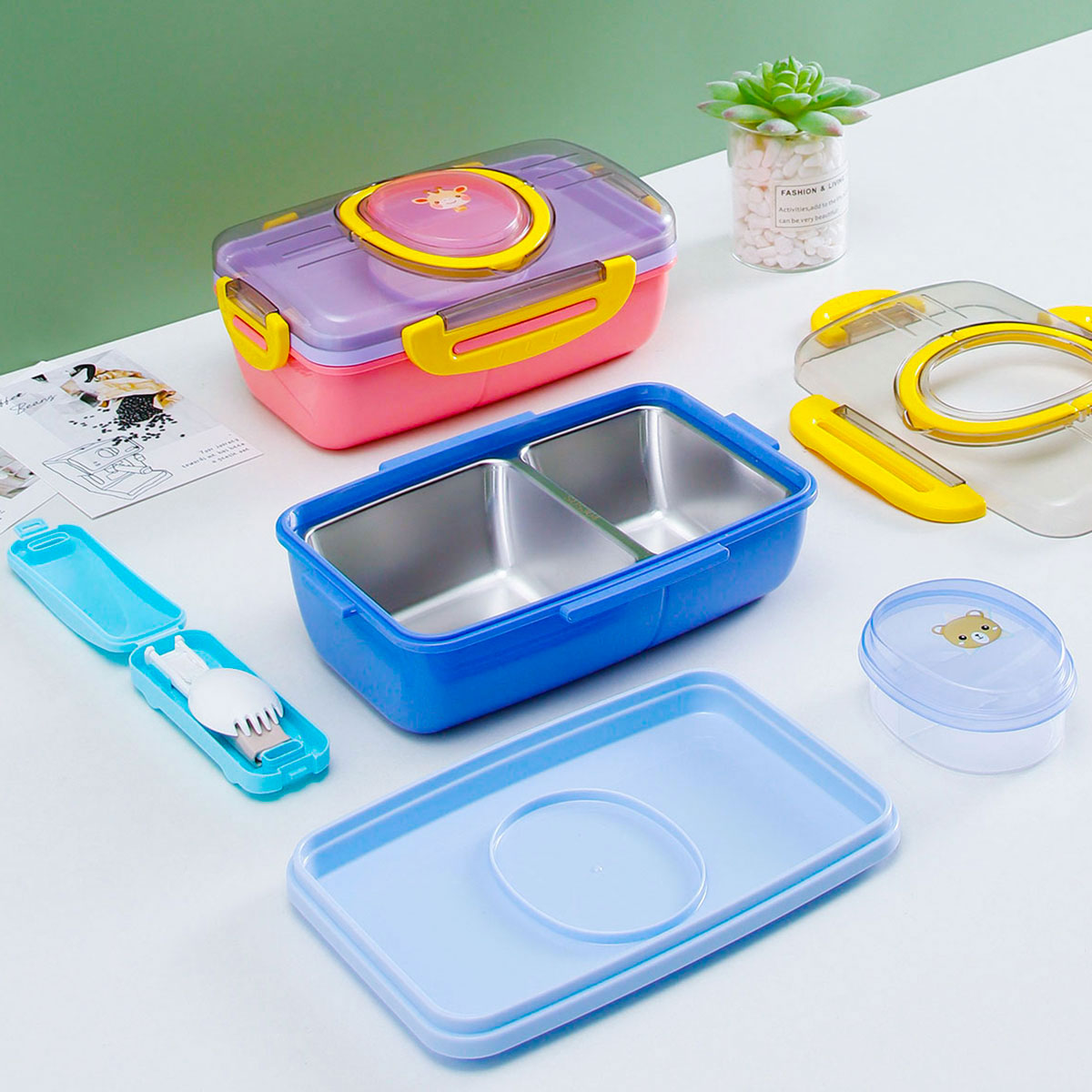 長方形手提塑料/不銹鋼飯盒