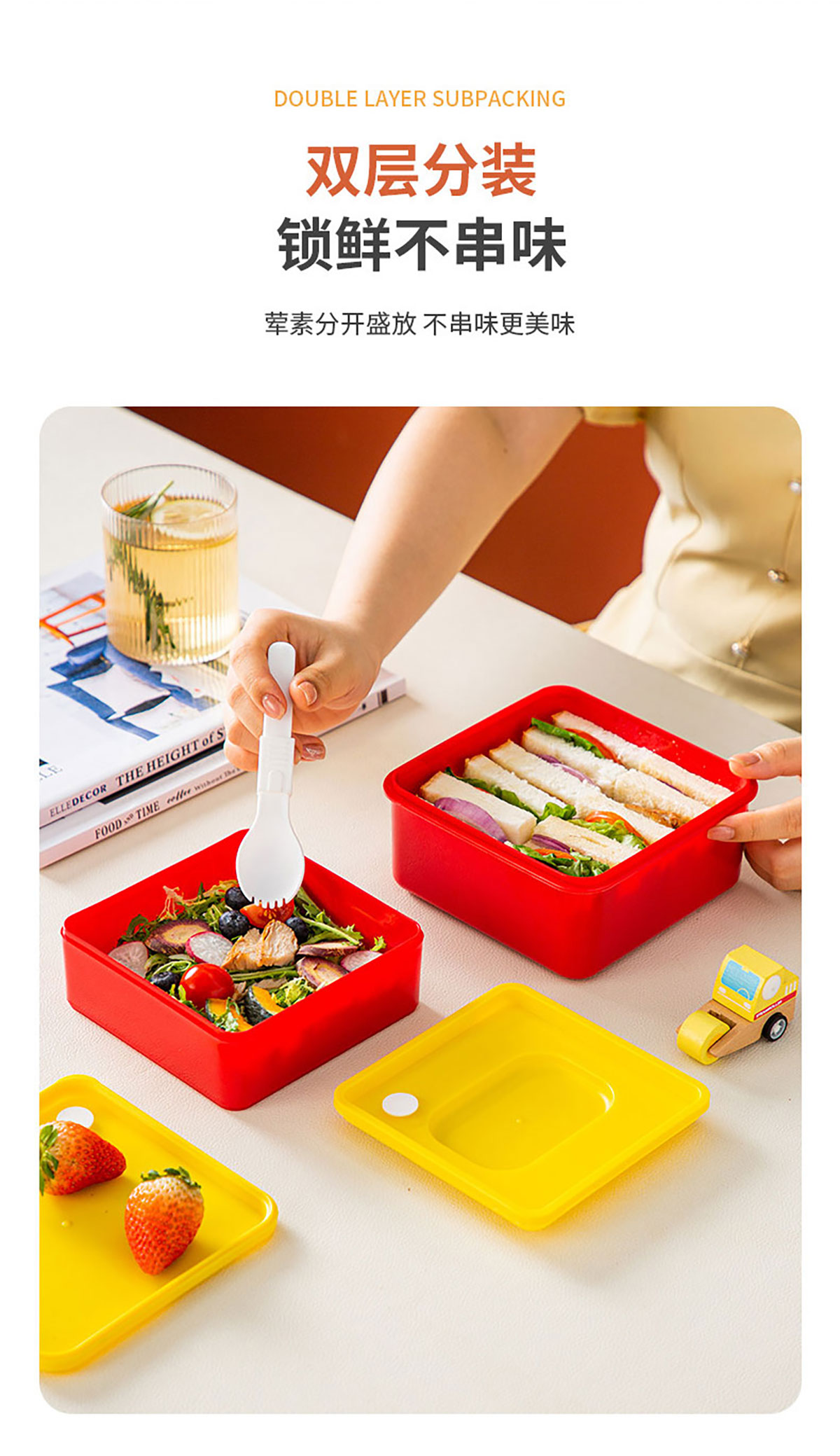 積木雙層方形飯盒1500ml