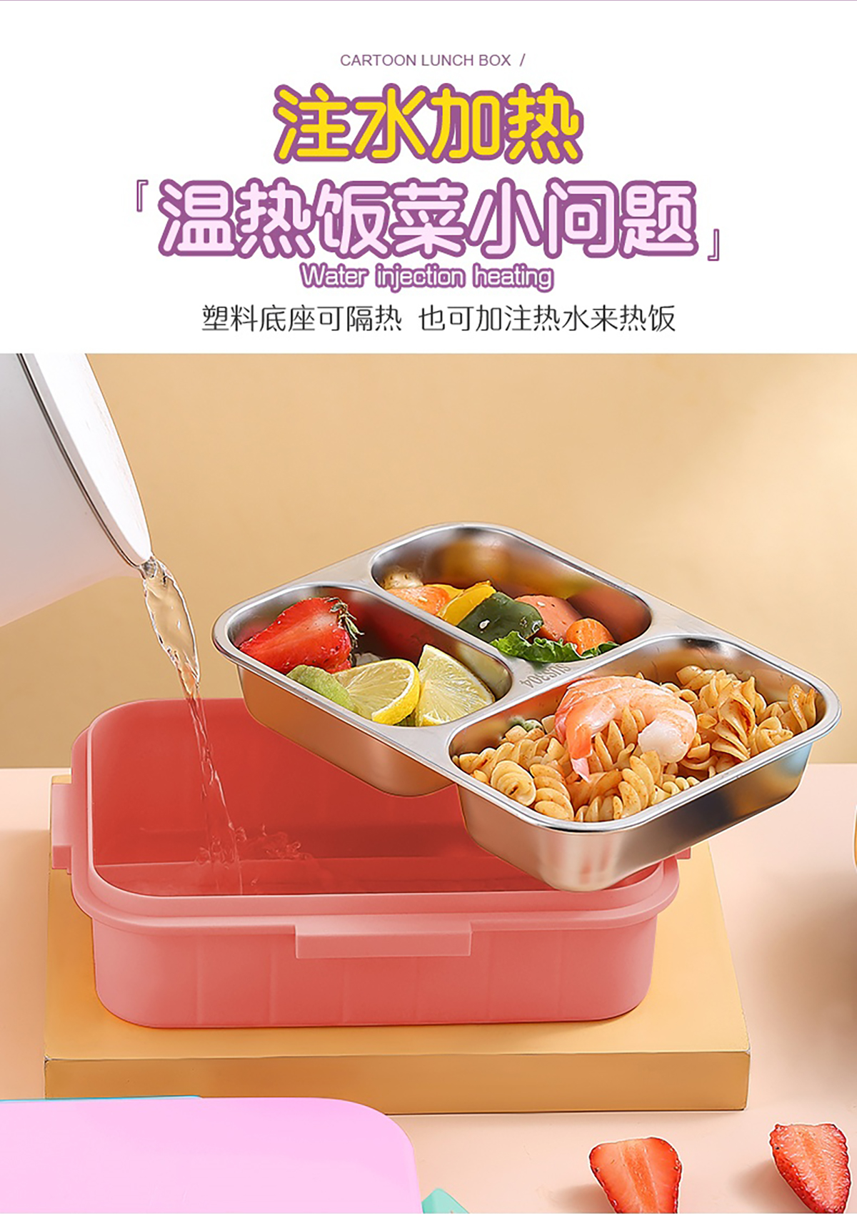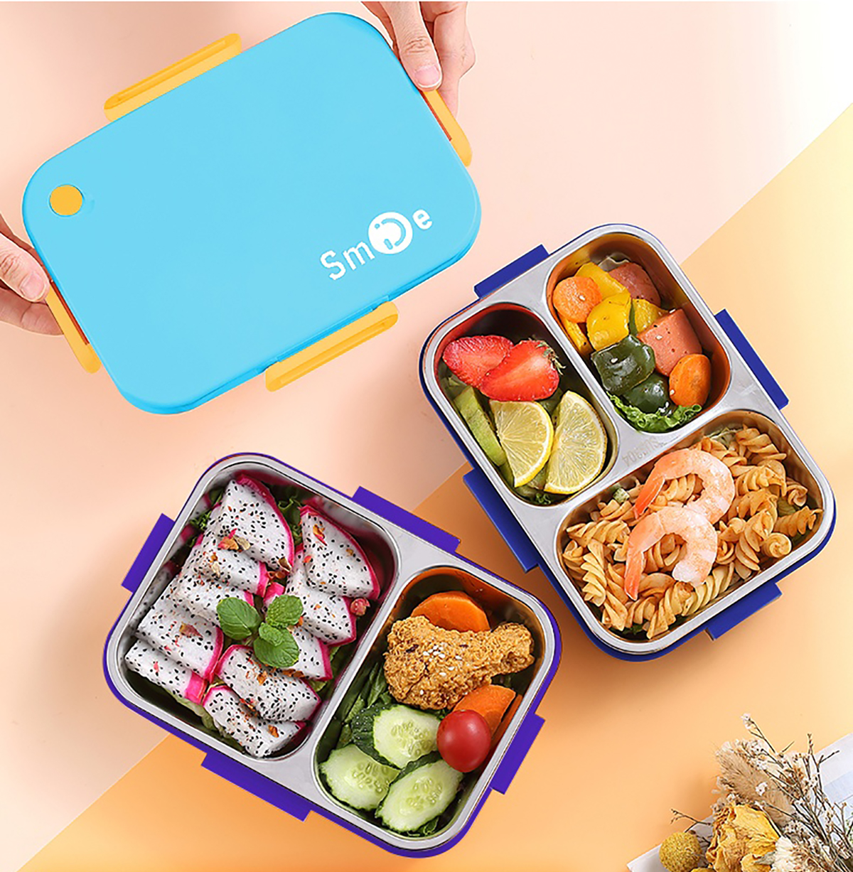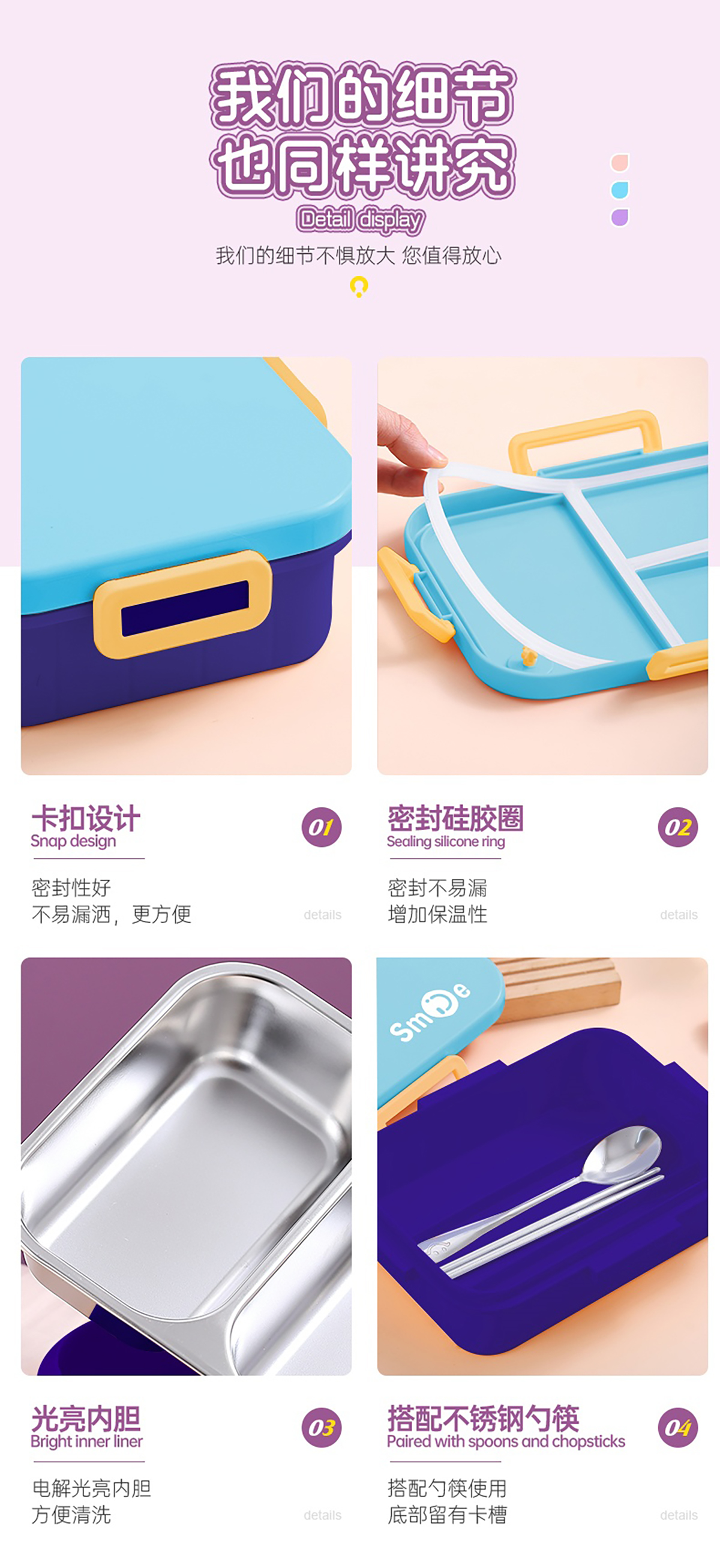 獨立密封不銹鋼餐盒(時尚二格800ml/三格750ml+不銹鋼勺筷)