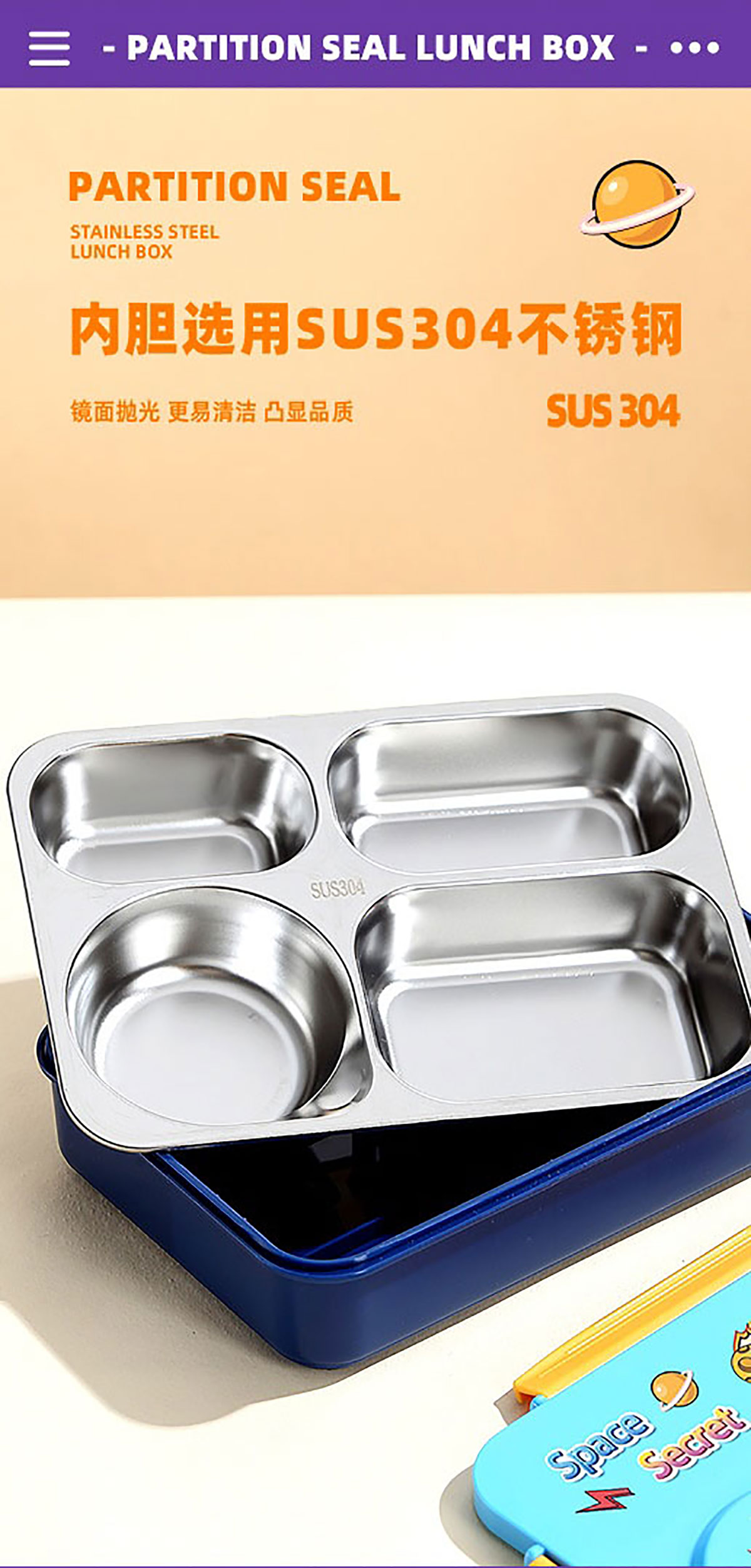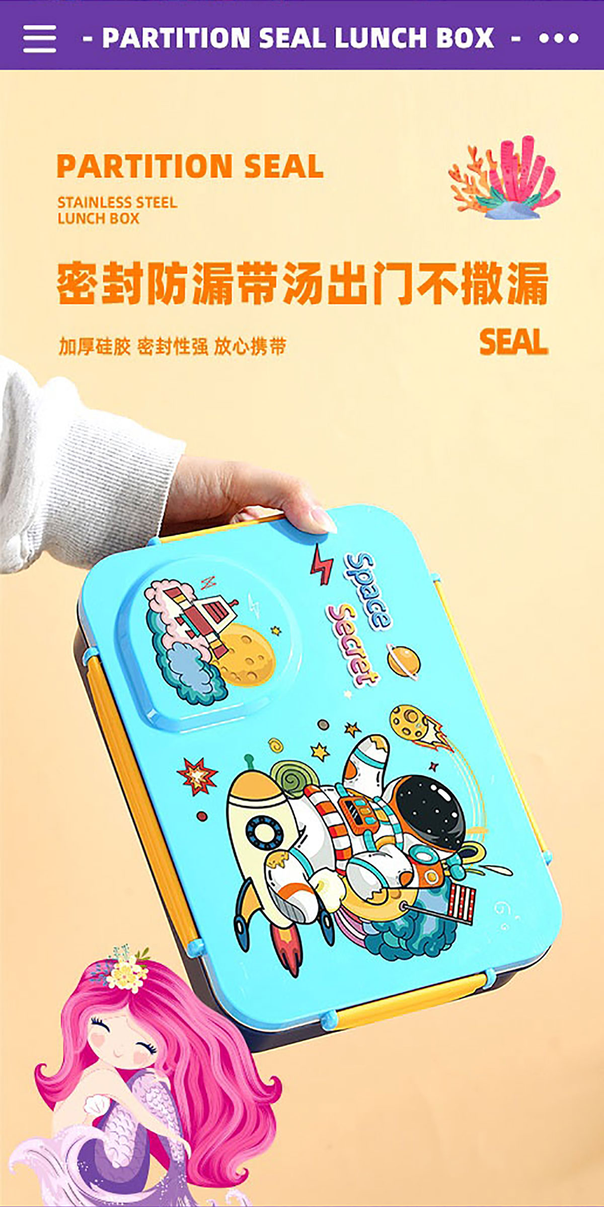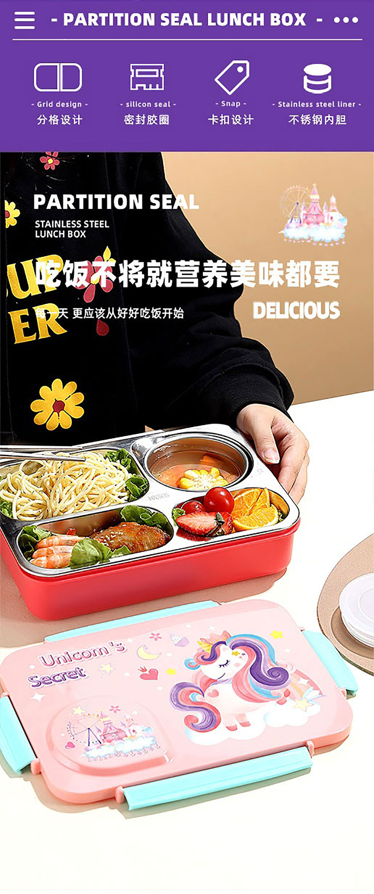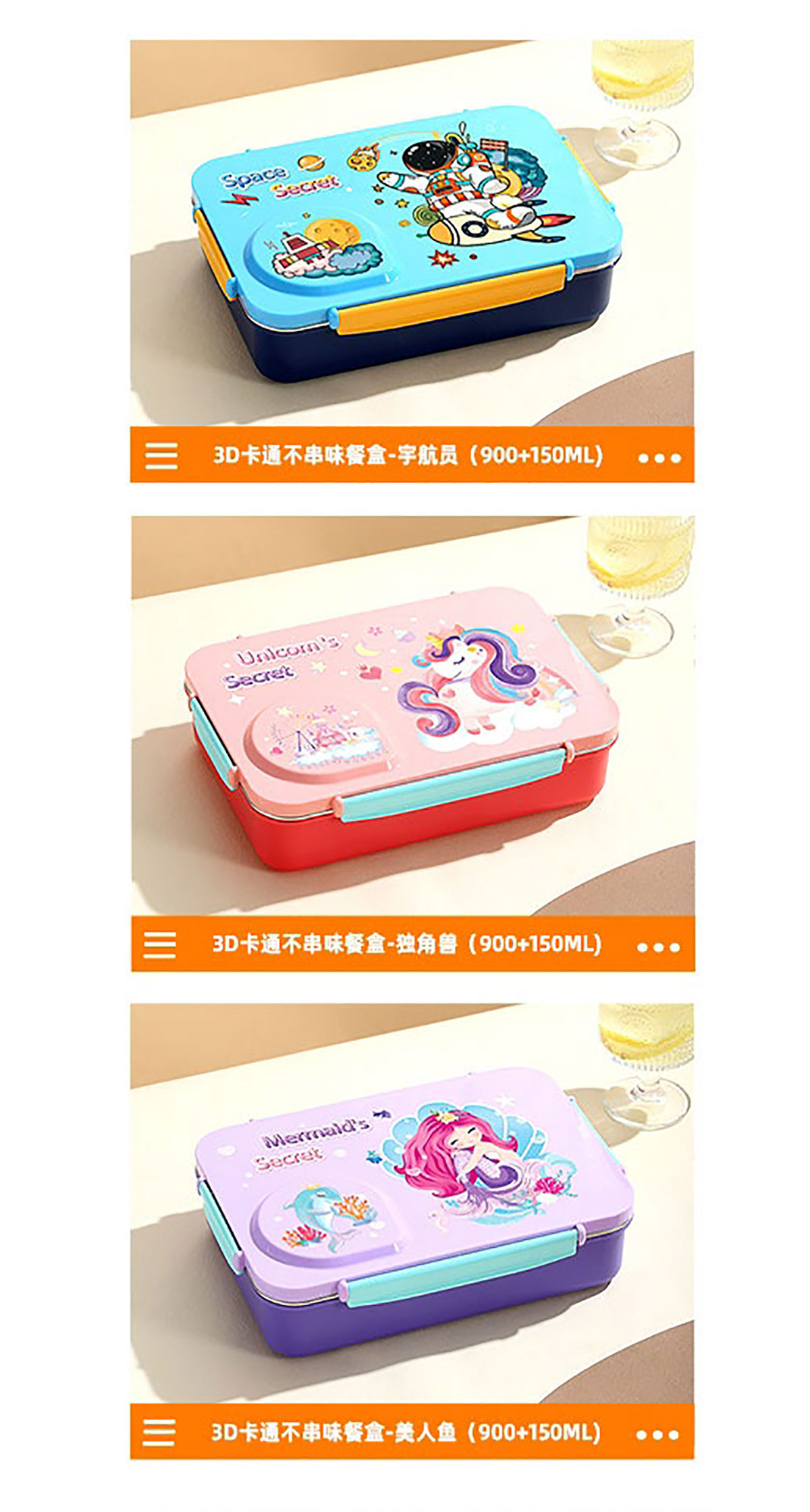 3D卡通不串味餐盒(不銹鋼4格900ml+塑料碗/不銹鋼碗150ml+不銹鋼勺筷)