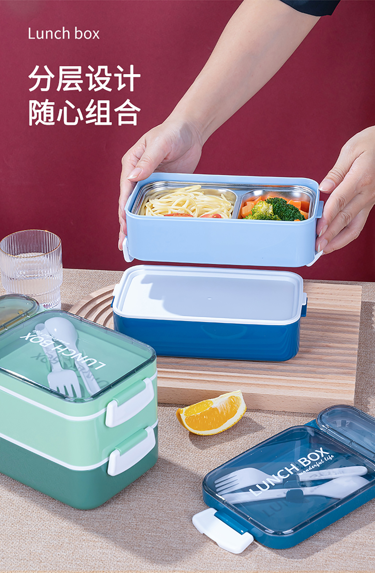 方形單層/雙層飯盒(塑料款/不銹鋼款)