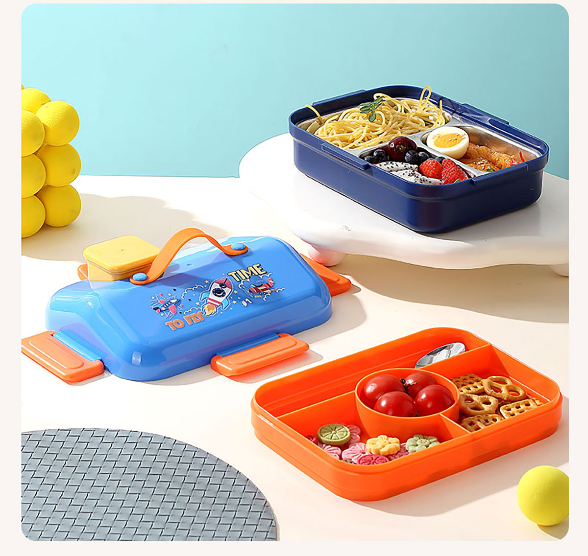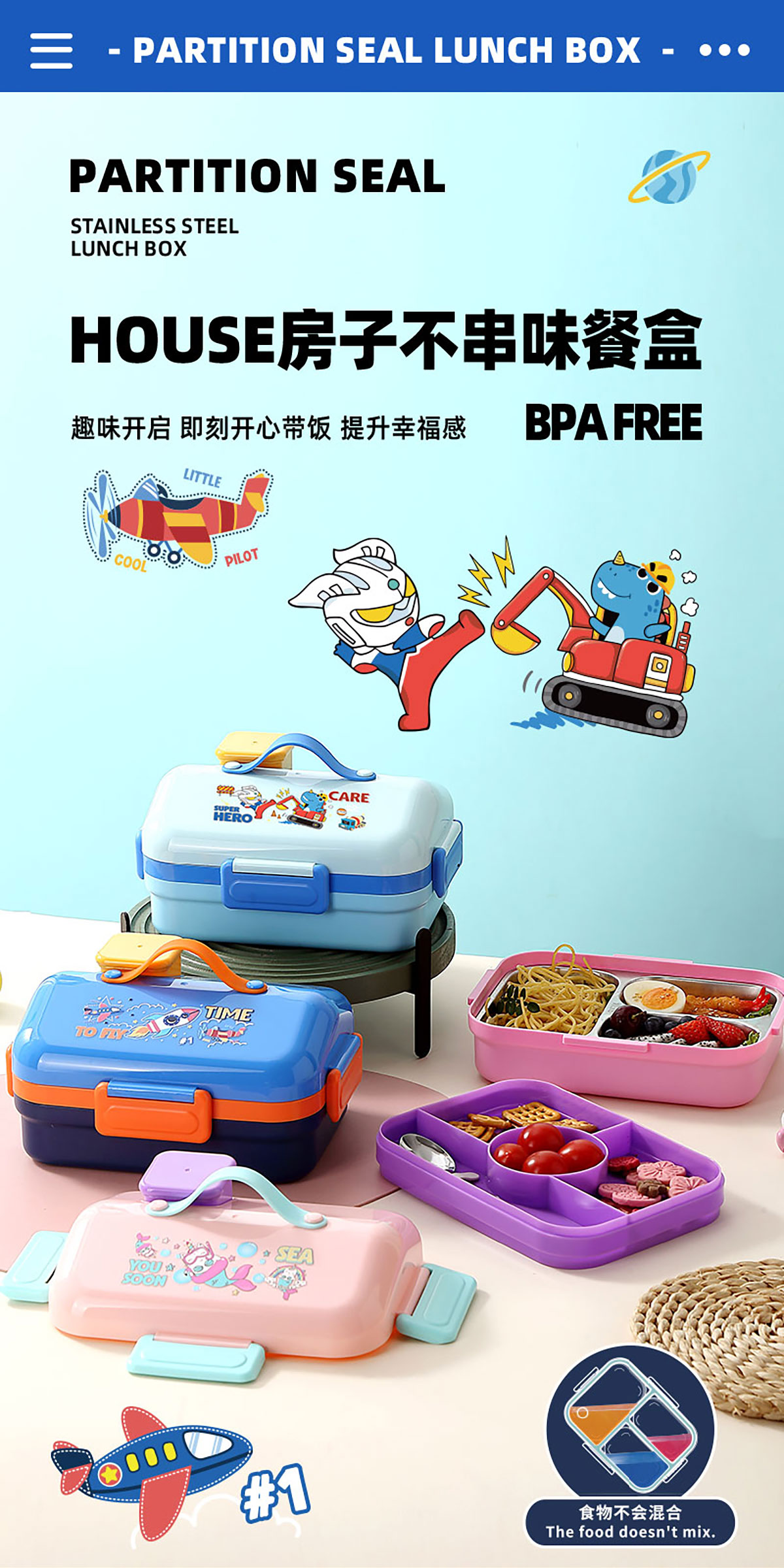 HOUSE房子不串味密封不銹鋼餐盒(長(zhǎng)方形3格800ml+碗70ml+不銹鋼勺)