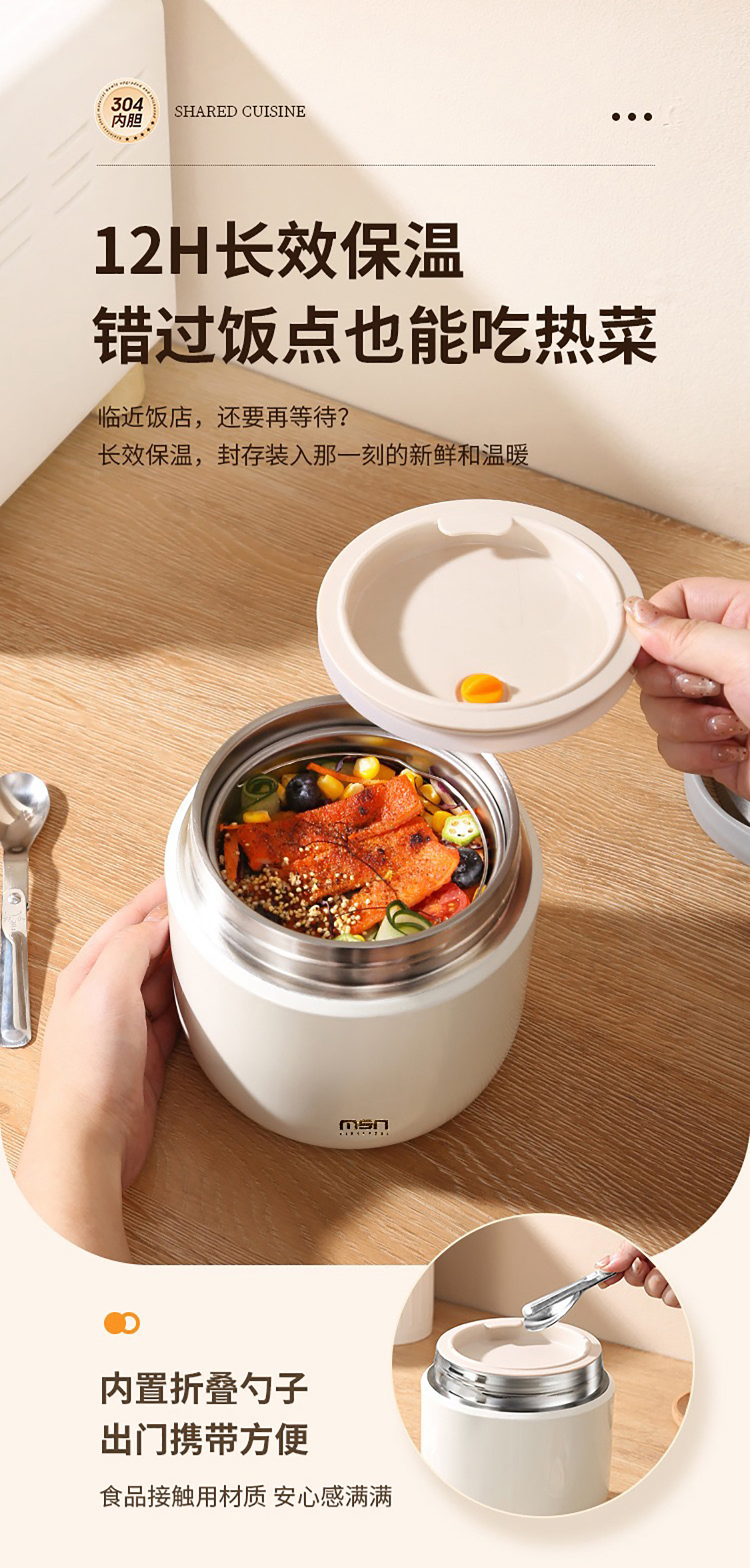 1.2L/1.5L304真空防溢雙層飯盒 本色/漸變