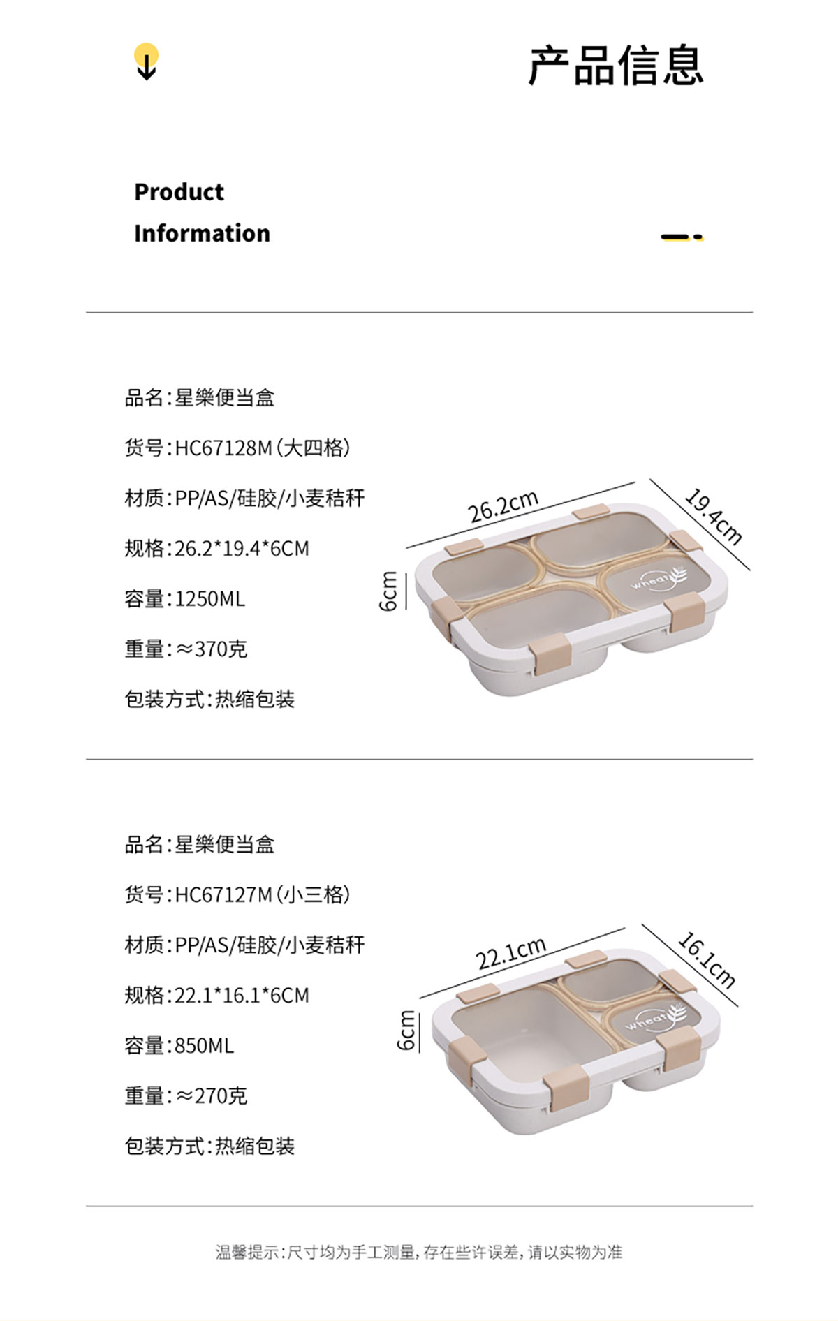 Size: SWY-HC67127M(三格):221*161*60mm/850ml